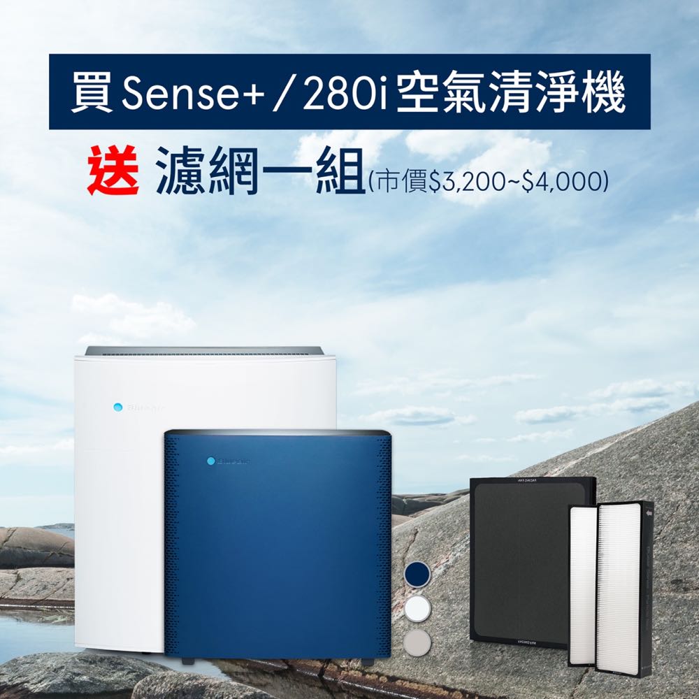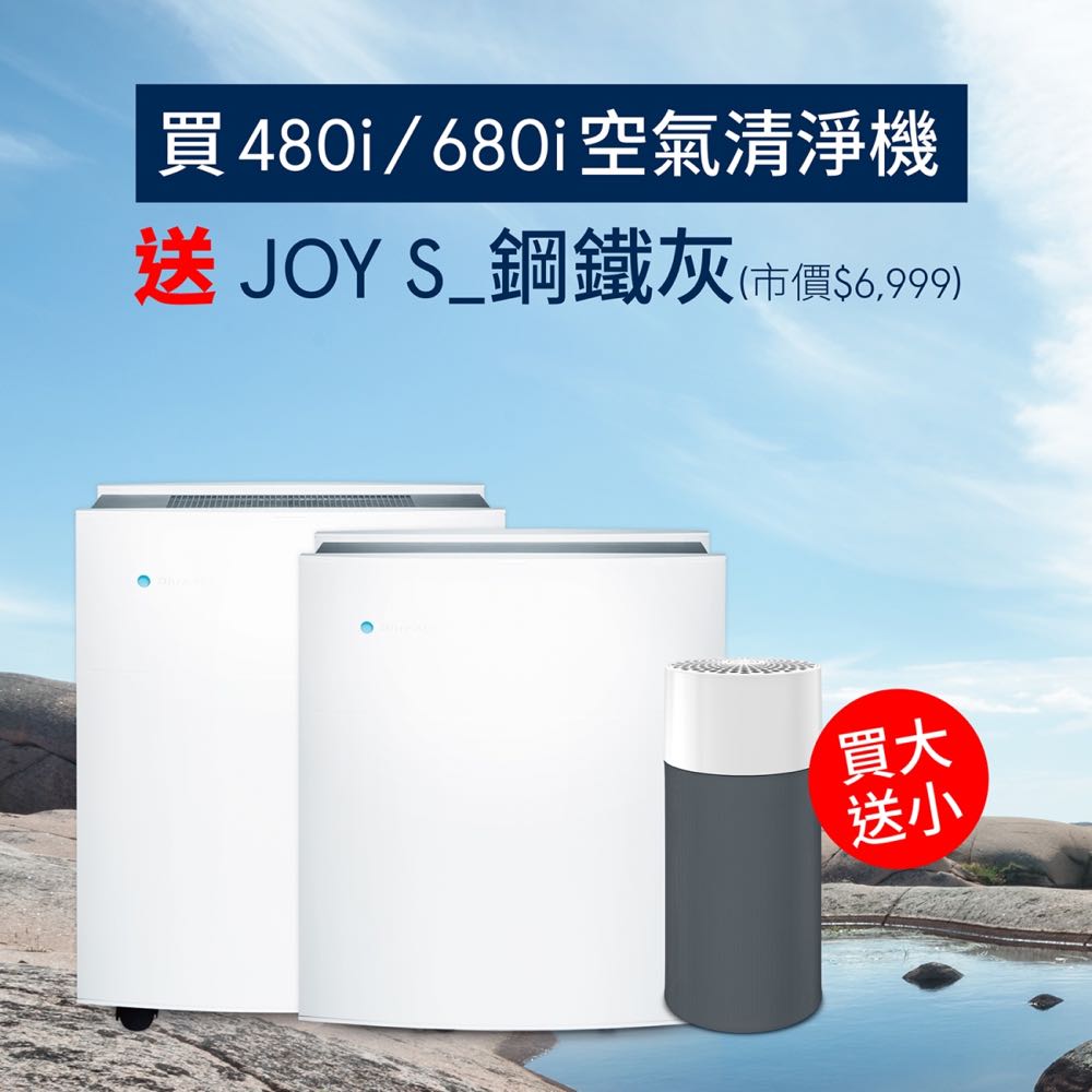 4.比優惠:品牌都會祭出機器特價、買機器送濾網等折扣,如 Blueair 就祭出目前史上最優惠「買大送小」優惠,購買 480i 或 680i 再送 JOY S 輕時尚玩美空氣清淨機 (市值 $6,999 元)。