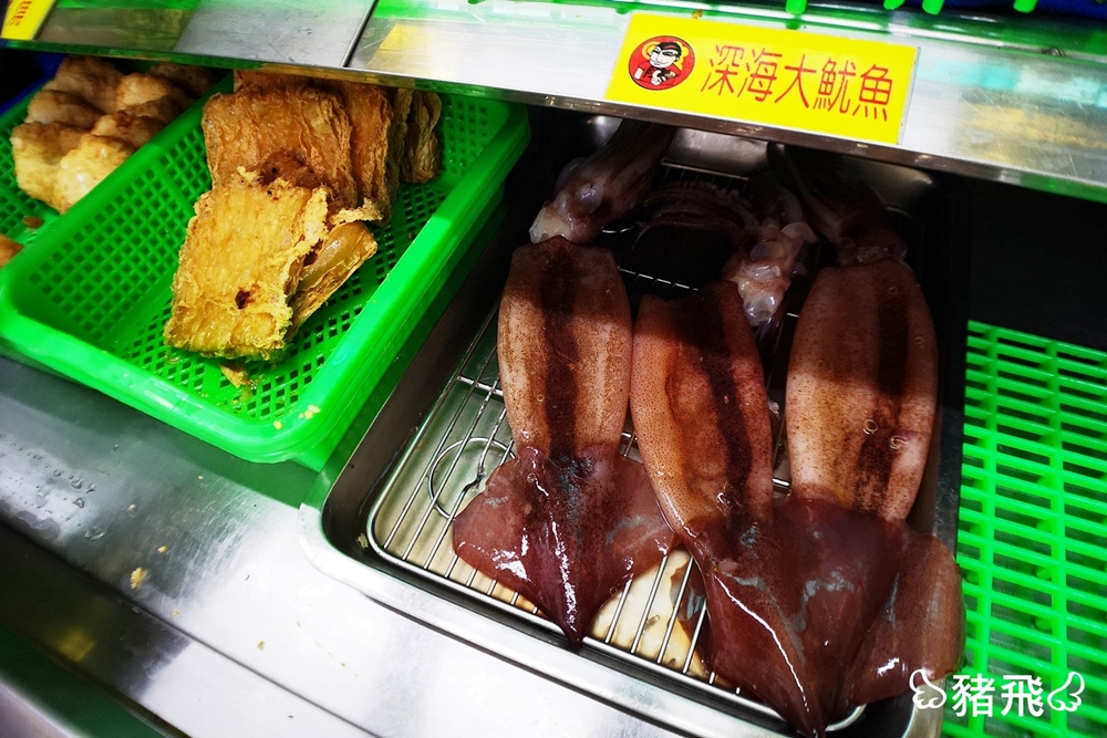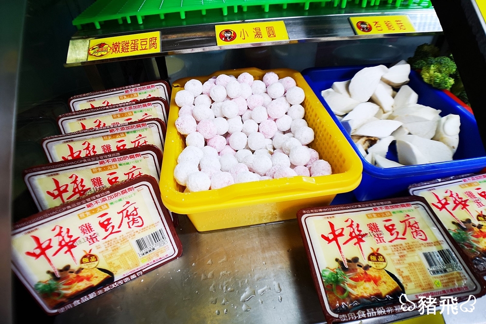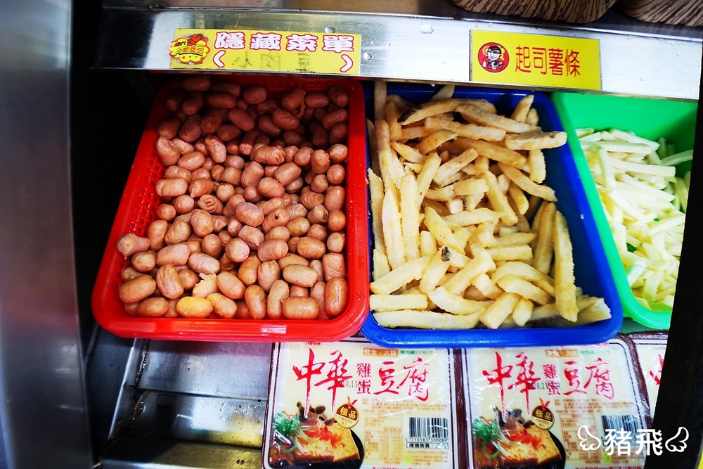 整個攤位上有2.30種食材,比較特別的有乖乖甜不辣、小肉豆(隱藏菜單)、小湯圓,食材都是冰在冰櫃裡的,想吃的時候再推開玻璃門夾取食材,不僅能夠維持食材新鮮度,一方面也是避免路過的車輛排放廢氣跟客人的口水噴飛。