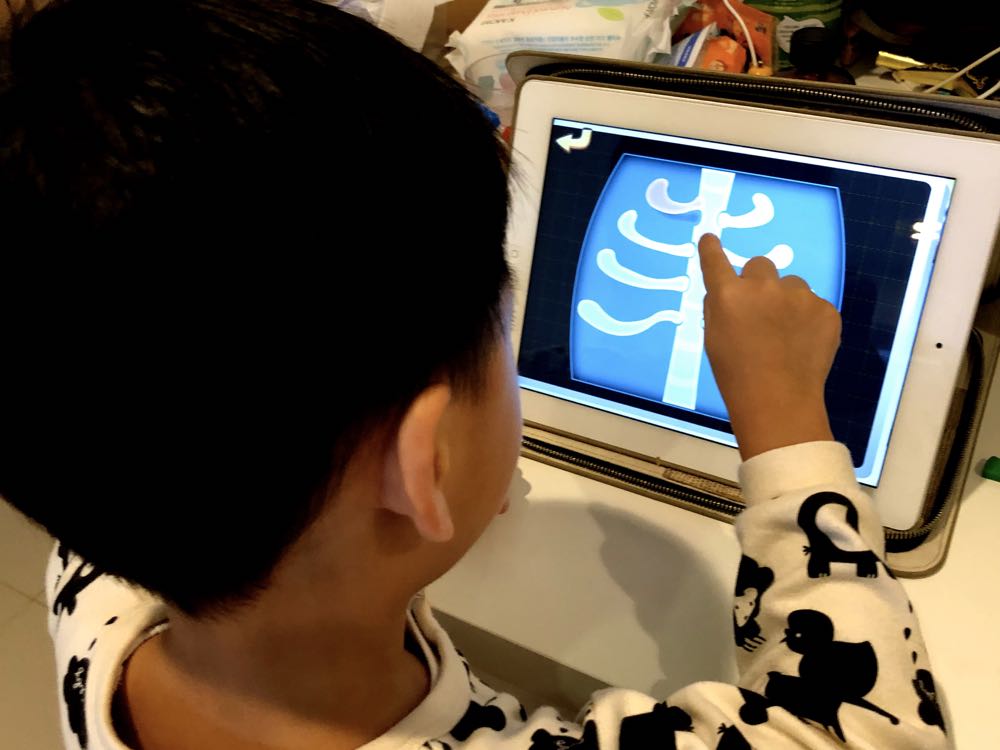 《熊貓博士動物醫院》共有診療間、2/3 樓兩層病房、四張病床,生病的動物會搭電梯出現在大廳,我們能夠點他們讓他們進來候診、安排病床,醫生只要點選病床上的動物,便能看到他們是牙痛、眼睛痛、胃痛等症狀,可愛的是如果是肋骨斷掉,小朋友可以用手指來把肋骨 “接” 回正確的位置、如果耳朵癢癢的,會有手電筒來找出耳朵裡小蟲躲在哪裡,還有打針、量血壓就連生病發燒了,也會讓你用毛巾幫他敷在額頭上呢!