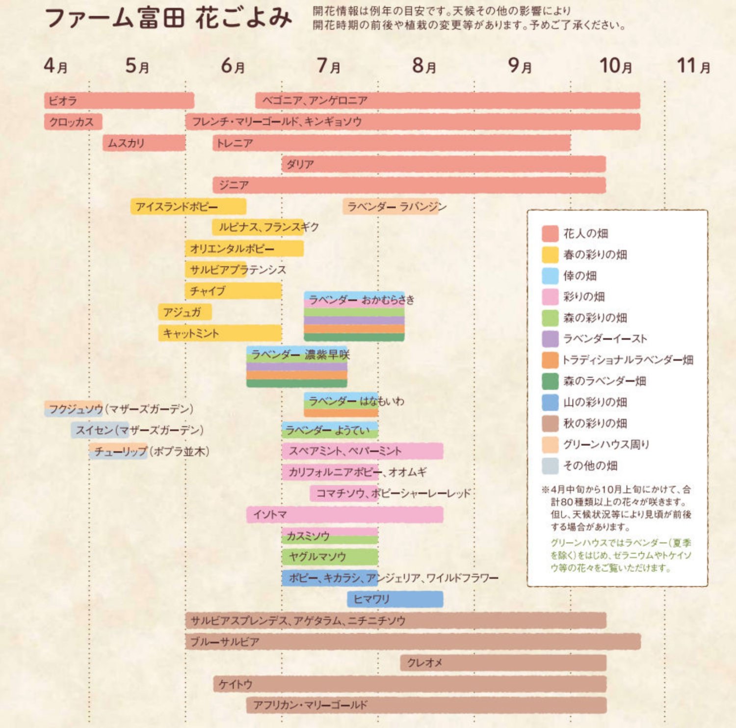 每年富田農場總會吸引超多來賞花的遊客,農場裡分成好幾個花田區域,每一種花的開花時間都不同,到十月都還有花可以看。但其中最受歡迎的薰衣草花田,最佳賞花期會落在七月中~八月初,像我們這趟來的時候已經是八月中,最大片的薰衣草花田已經陸續收割略為可惜,但彩色花田的部分還是很美呢~