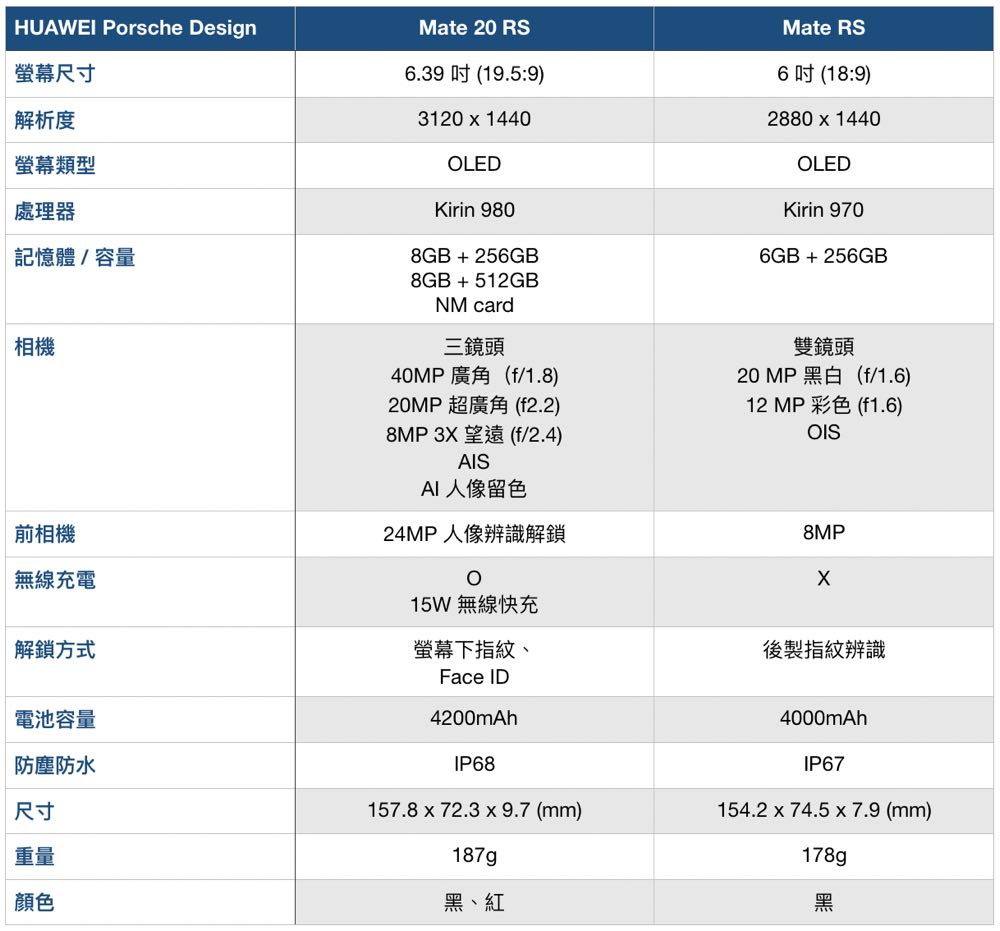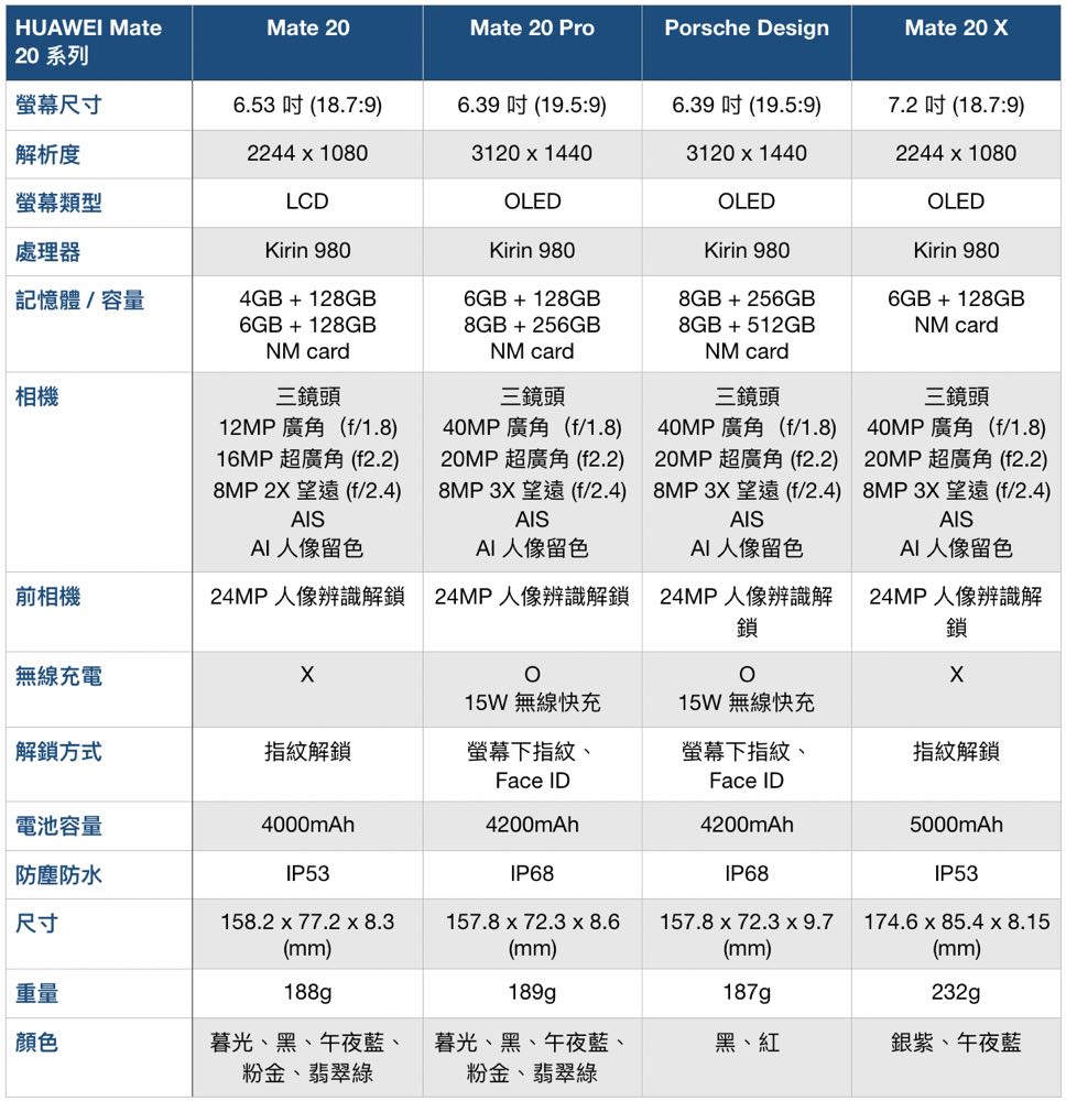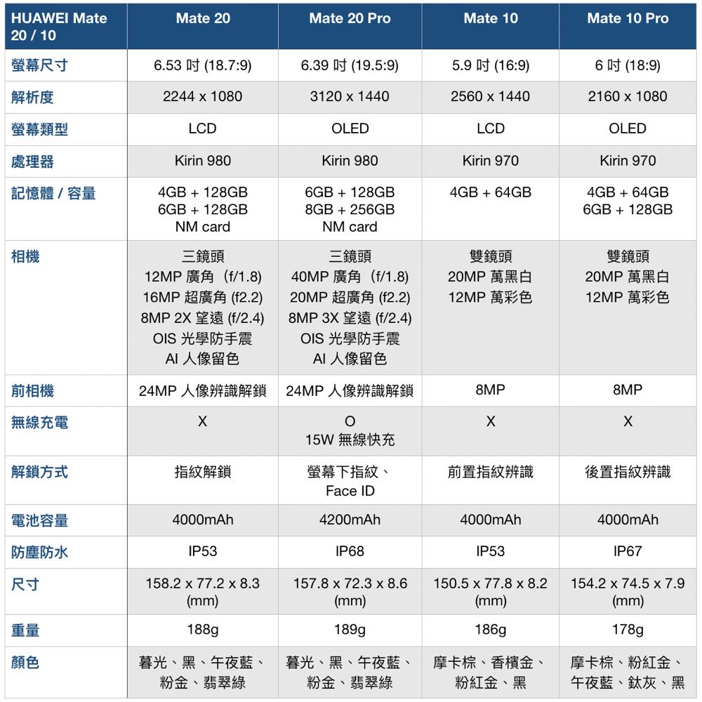 華為 Mate 20 / 10 全系列規格整理 看看今年進步了多少!