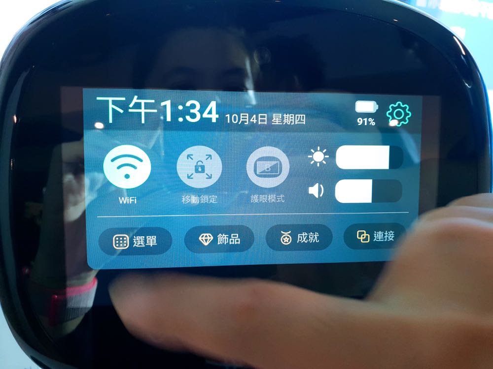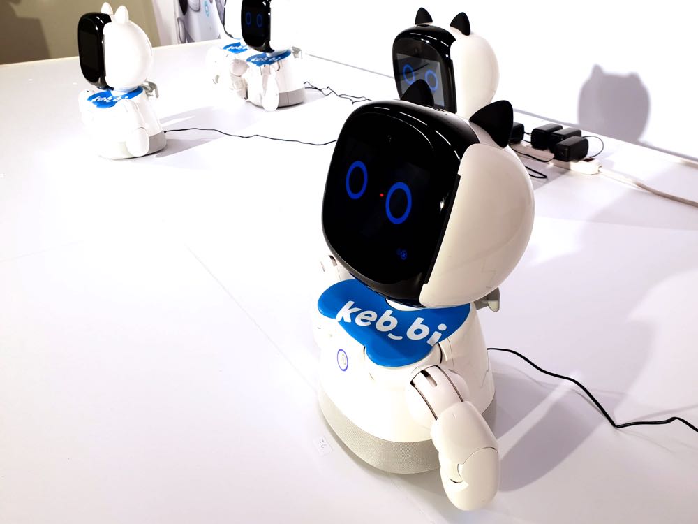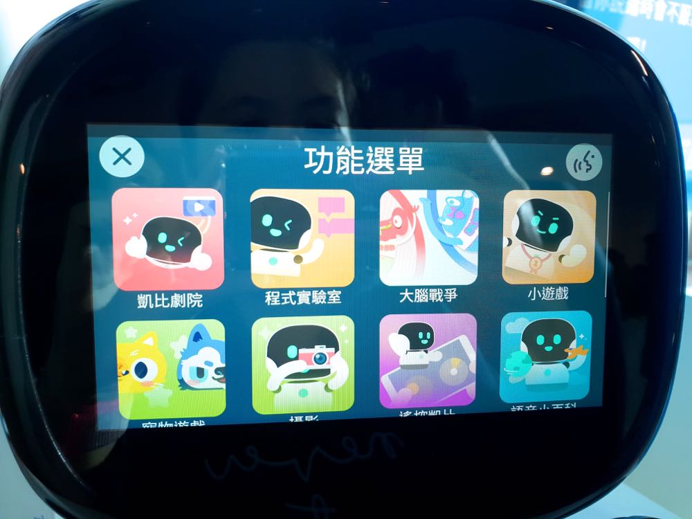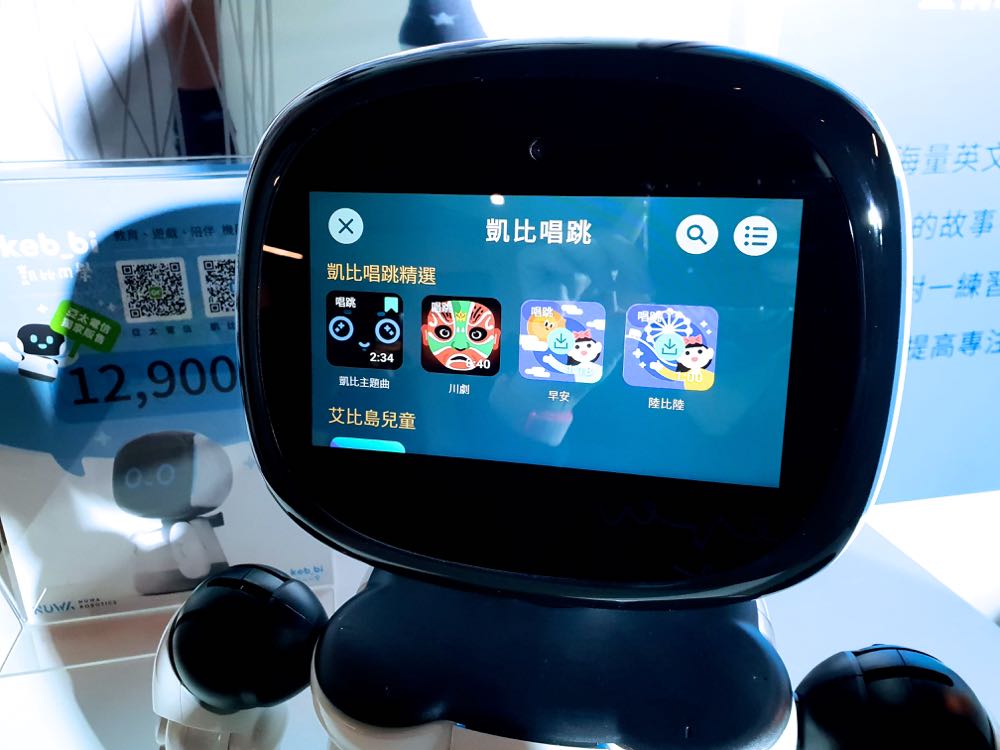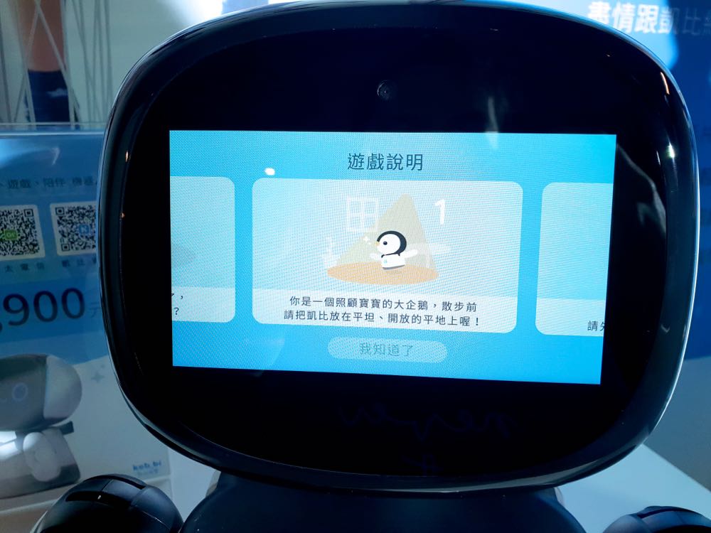 根據了解,只要對著小機器人喊出「凱比同學」,就能透過螢幕上的可愛表情得到「Hi」的回應,接著可以直接用口令或是觸控螢幕來進行功能服務的使用。而服務目前包括有能夠養電子寵物、說故事(說故事的時候螢幕還會隨著故事內容來換成角色的臉)、音樂唱跳,更能藉由螢幕上方的鏡頭請他幫忙拍照、玩比手畫腳遊戲、遠端視訊,甚至是化身成小企鵝來跟隨著你!