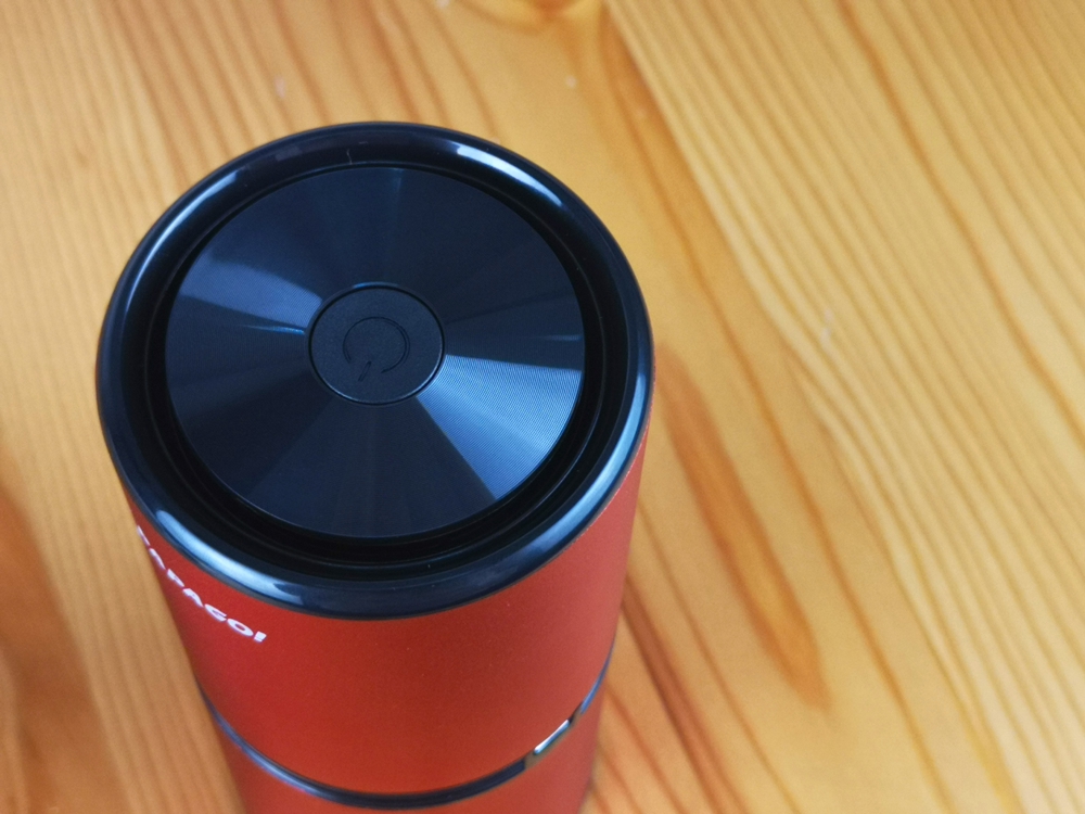 機器直徑僅比 350ml 鋁罐飲料罐寬一點點,因此在汽車飲料架閒置時,剛好能放入,不佔空間。原廠所附的電源線夠長,線插入車充足以延伸到後座,也方便後座乘客為手機充電。
