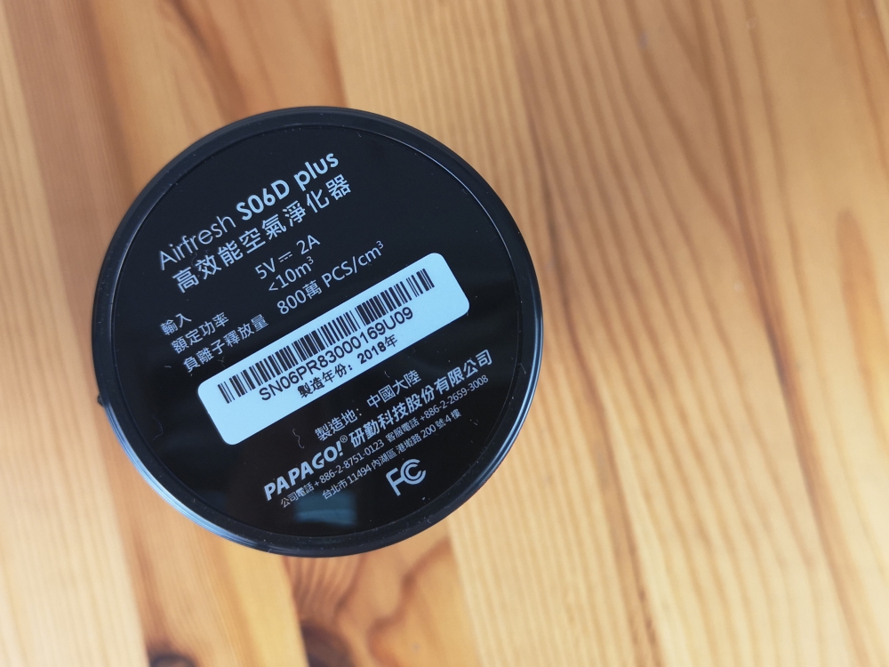 機器底部標示器每秒最多可以產生 800 萬負離子,負離子能分解異味、吸附空氣的微粒,去除霧霾,改善空氣品質。