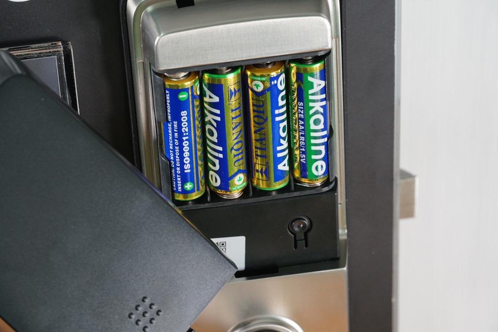 產品需要四顆三號電池驅動,官方表示以每天開關十次,估計可以使用一年,但建議可以按時更換才不會有沒電突然打不開門的尷尬。不過就算沒電,產品有個非常有趣的設計可以讓們變有電。