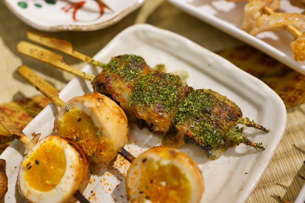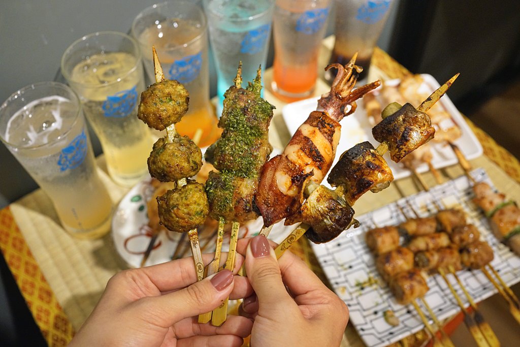 這次按照店長推薦,選了一些店家的招牌口味來吃吃看,使用竹籃裝串燒,加上竹籤上刻的店家LOGO,充滿日本味,滿滿一盤看起來好有份量感,感覺可以好好大快朵頤一番!