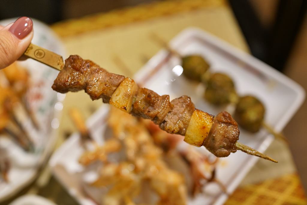 伊比利梅花豬肉的口感細膩、香氣十足,在肉串之中加了蘋果,讓整體口味更加的清爽,有解膩的效果。