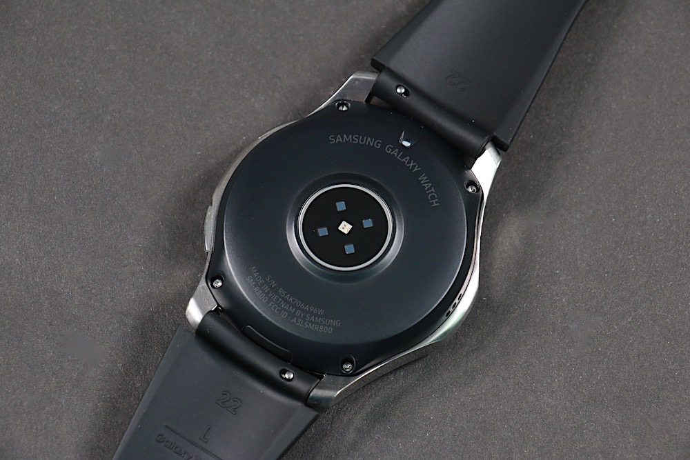 增加四個光電二極體的全新心率偵測器設置在背蓋中間,增加心率偵測的準確度,也可以手動啟動內建的心跳偵測功能,心率偵測器會發出偵測血管心跳的綠色LED光,讓緊靠在手上的Galaxy Watch就能立即偵測心率狀況,讓重視運動前、中、後心率狀況的朋友們可以輕鬆自我檢測。