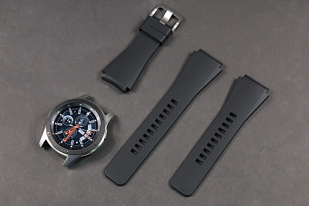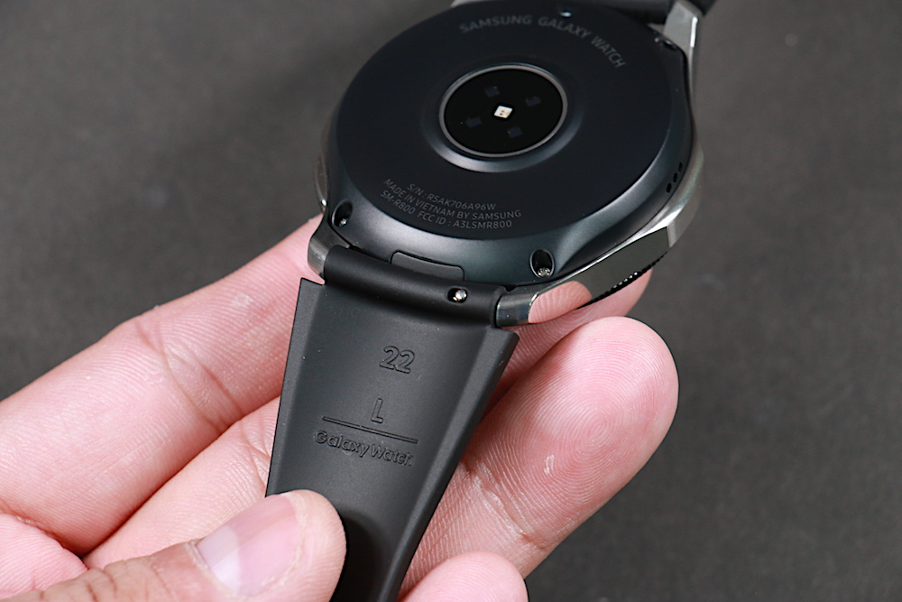 與過去的 Gear S 系列錶款一樣,Galaxy Watch 46mm 同樣採用可拆式錶帶設計,除了已經安裝在手錶上的 長度 L、寬度 22mm 錶帶之外,盒裝內還另外附贈一條長度 S、寬度 22 的錶帶提供替換。另外,如果未來在三星官網上看到喜歡的錶帶,亦可直接購買替換。