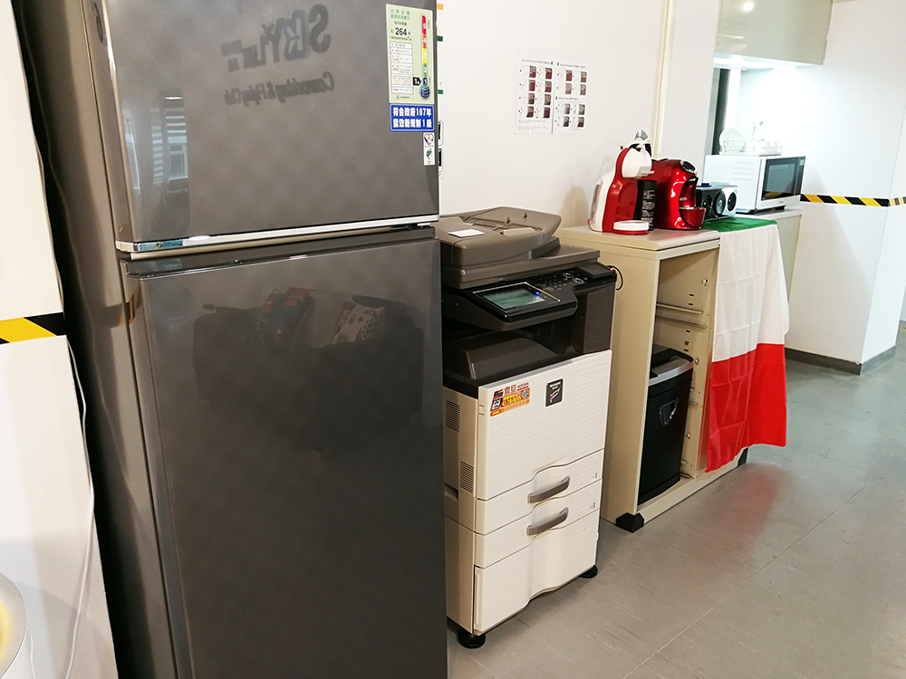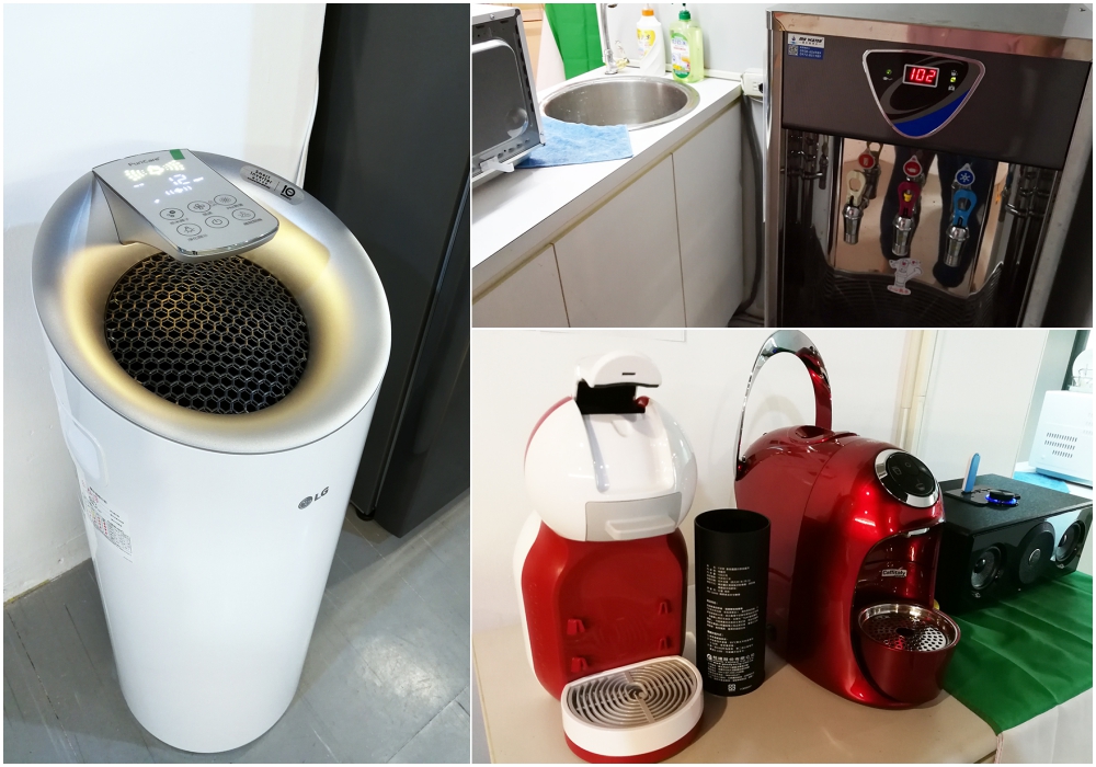 說到和客戶喝咖啡,這裡其實備有全新 PM2.5 空氣清淨機、冰箱、免費的飲料咖啡膠囊咖啡機、微波爐…等,真的配備齊全又超優的啊!
