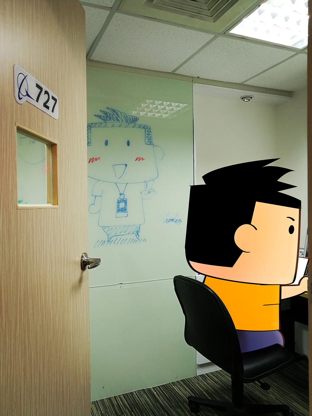 每間都有自己專屬的冷氣,我這間還有個可以書寫筆記的牆壁(左下角城堡是我女兒畫的XD),除了接送小朋友們上下課,有空就會待在這間辦公室創作。