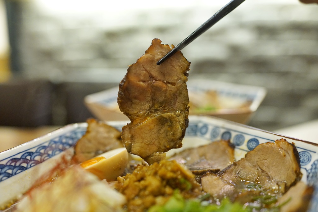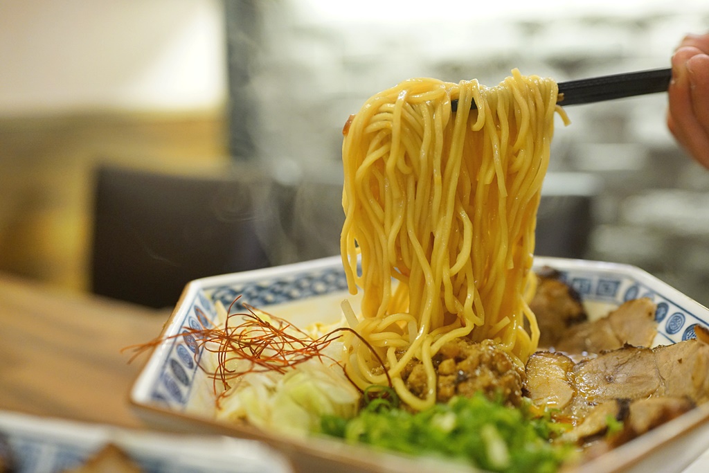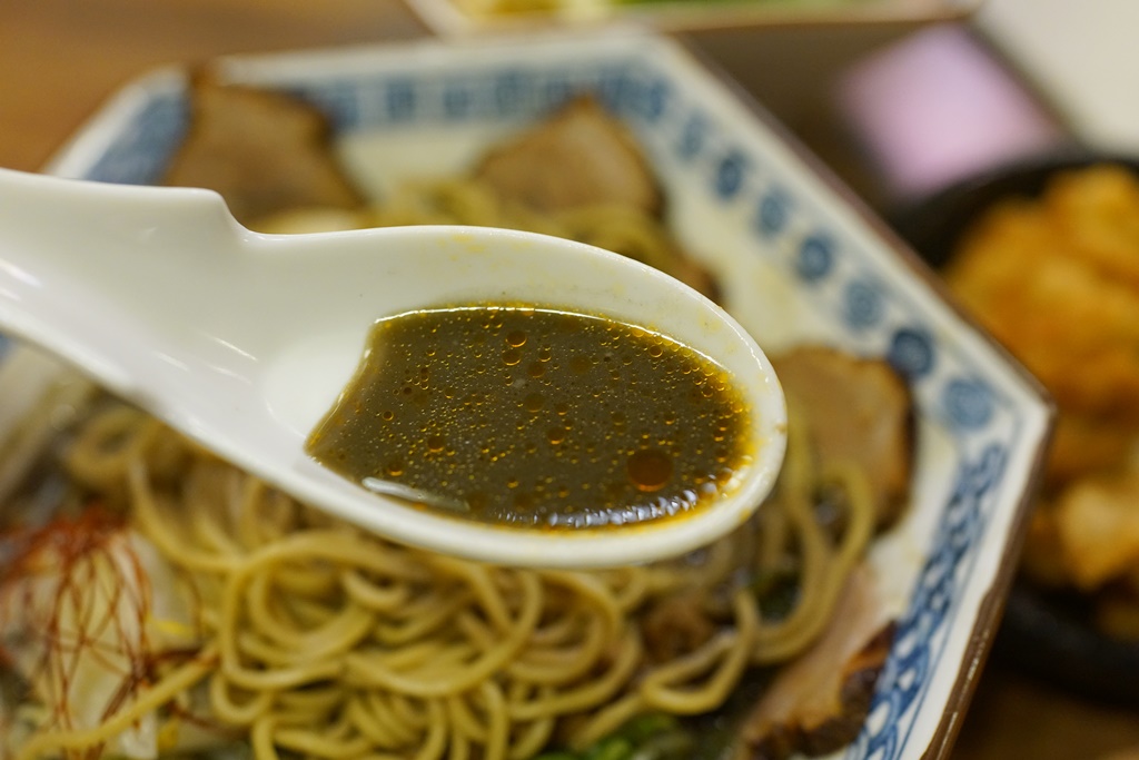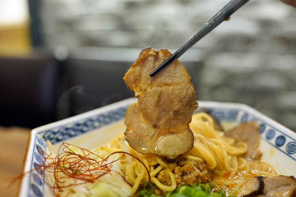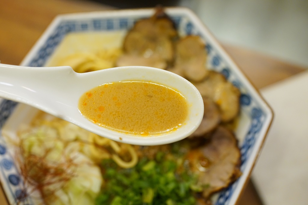 而赤湯指的是白芝麻的湯底,兩款都略帶微辣,店員說兩者相比是墨湯口味比較重,但我倒持相反意見,覺得赤湯的白芝麻香氣更加濃厚、香醇,蠻道地日本味的,喝著暖呼呼的胡麻湯底,搭配叉燒的時候覺得好像在日本,但一吃到帶有肉燥香的麵條時,又一瞬間回到台灣了!