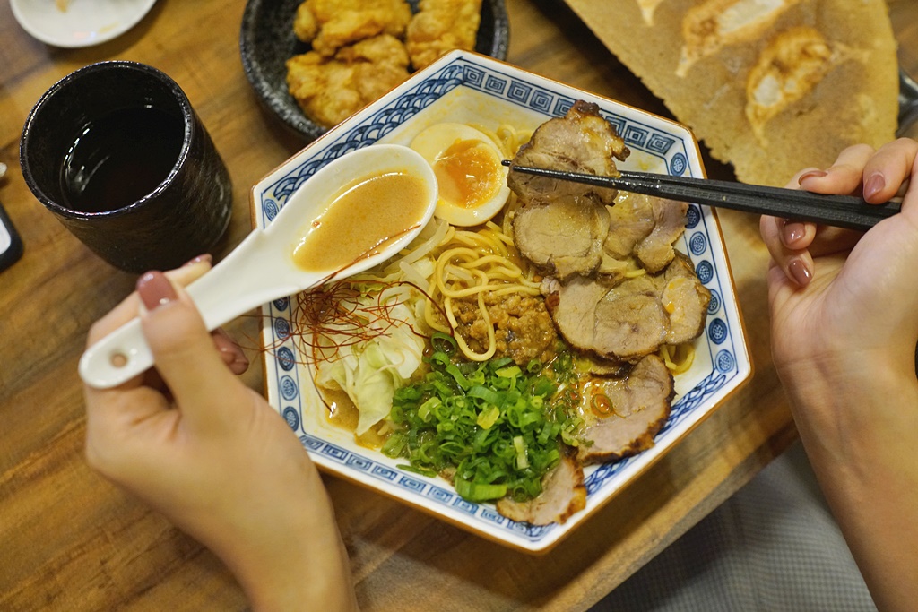 主廚遠赴日本學習,擁有30多年專業中華料理經驗,為了讓更多人愛上日本國民喜愛的美食,必須迎合台灣口味,用心研究改良,做出不失道地日本味、又受台灣人喜歡的料理,就是你們看到現在菜單上一碗碗看起來超美味的『辛担麵』又分為兩種湯頭,分別是白芝麻湯底的“赤湯”與黑芝麻湯底的“墨湯”。