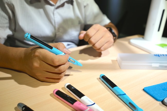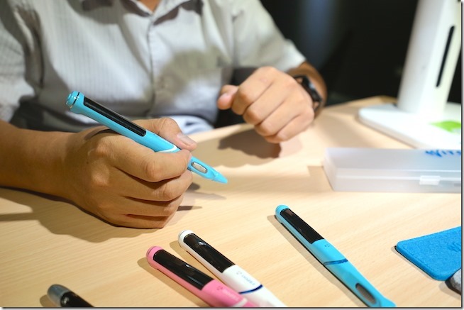 這聽起來有點神奇對嗎?其實小小的智能筆裡頭可是藏有微型馬達與感應晶片搭配,一旦各種使用條件沒有滿足時,筆芯將會縮回到筆身內,使用者便無法書寫,藉此提醒孩子們該將握筆姿勢改一改才行。