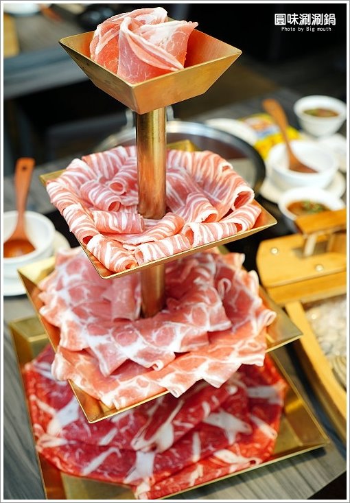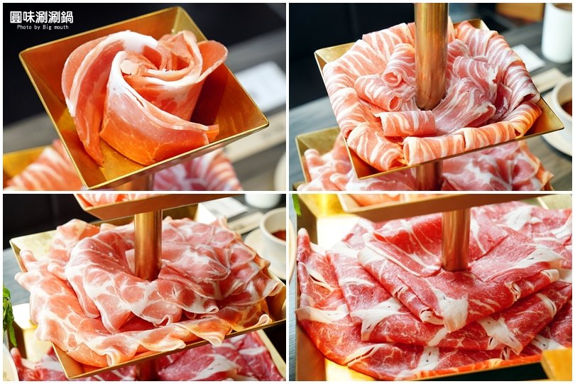▼從上而下依序為北歐梅花豚、雪花小羊肩、北歐梅花豚、Prime霜降牛,第一層還是捲成玫瑰花的造型,華麗的模樣看起來真的很吸睛!