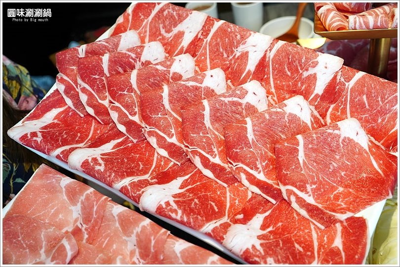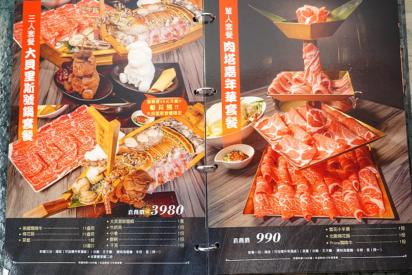 ▼大貝里斯號鍋三人套餐裡的肉盤,美國霜降牛11盎司、梅花豚11盎司,愛吃肉的朋友包準也可以吃得很過癮!