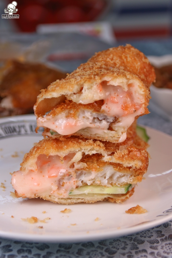 帶有創意與西式餐點的明太子魚排潛艇堡,帶有甜甜圈口感的長條麵包油炸到酥脆