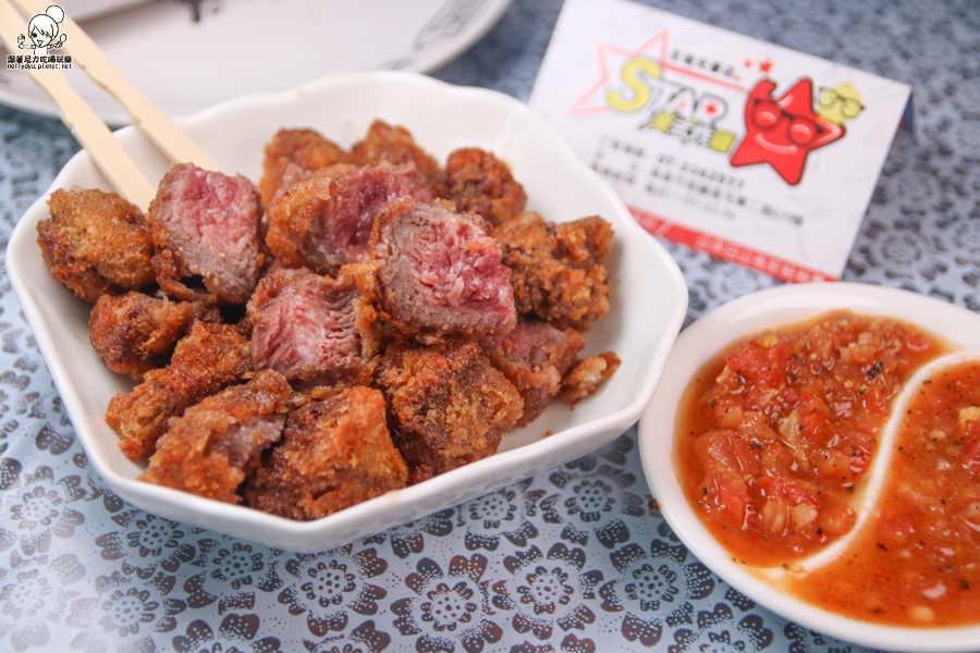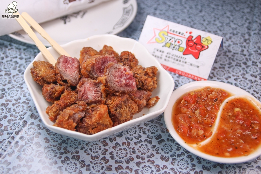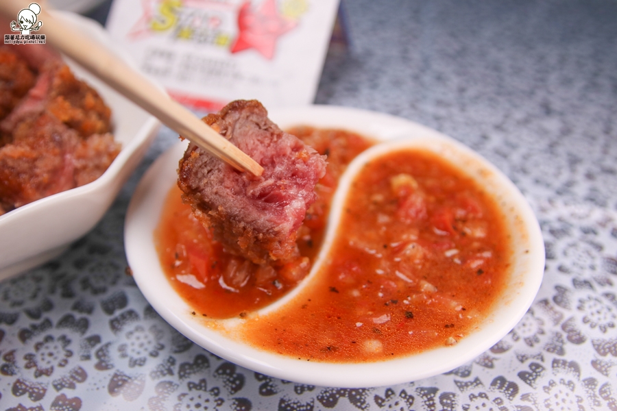沾上特製莎莎醬提味,帶有酸甜開胃的香氣讓炸牛排多了一股西式餐點風味,
