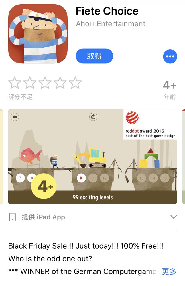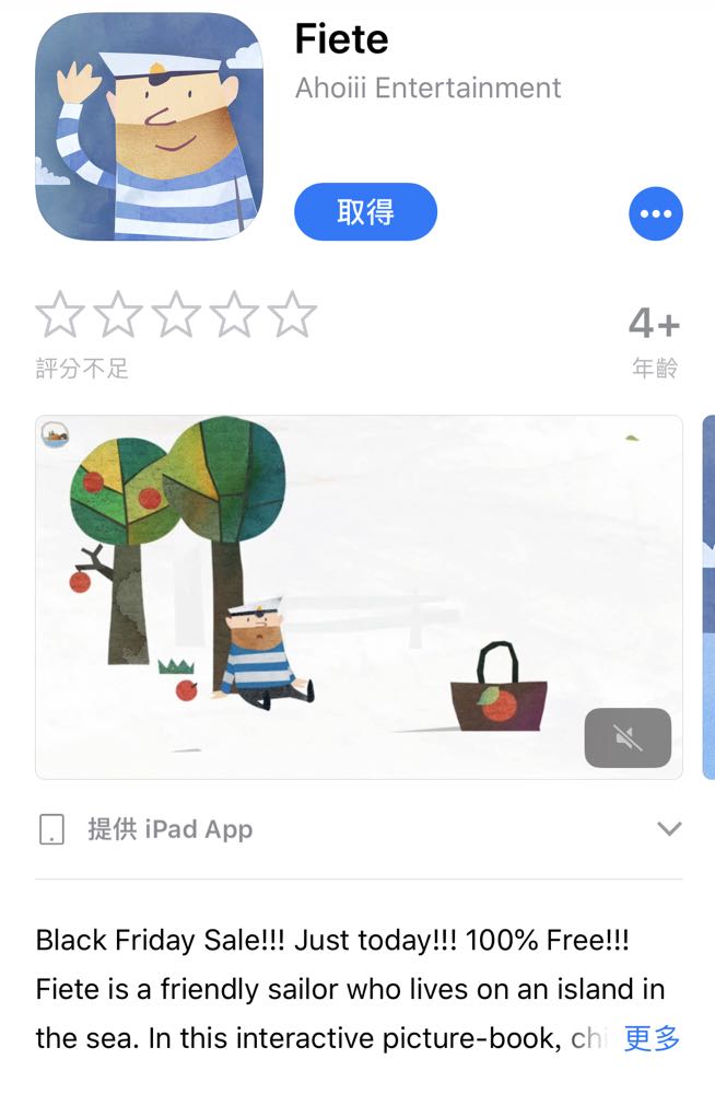 黑色星期五不只有電商湊熱鬧,iOS 也有一款親子教育 app- Fiete 就在黑色星期五中推出限時免費的優惠,讓爸媽們也能夠趁機會下載些好玩的 app。而 Fiete 是為 1-3 歲小孩所設計的繪本式互動 app,色彩豐富主題鮮明,能邊跟小孩說故事、解任務和玩遊戲,並且從中間了解更多生活的規則與道理。