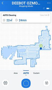 充完電後就可以開始清掃啦~~最新機款的OZMO 900擁有Smart Navi3.0雷射導航技術,感應更快更精準,不會繞圈圈找不到路或去撞牆。下載ECOVACS的APP讓操作變得更簡單,APP具備特殊清掃模式,隨時排程、監控清掃過程。