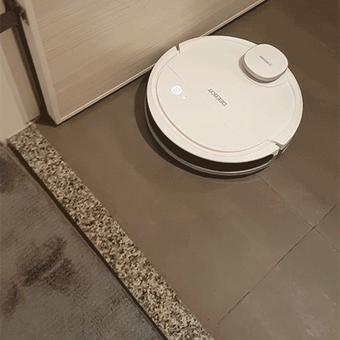 一不注意就跨越門檻跑去廁所了Σ(*゚д゚ノ)ノ我們家廁所門檻大概2公分,所以2公分高度差,ECOVACS OZMO 900是可以爬上去的。