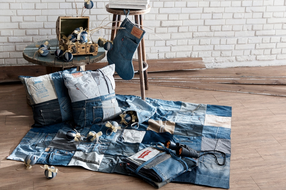 使用回收後仍舊精良的LEVI’S 丹寧布料打造成3款暖心創作,解構重組、再製成丹寧聖誕掛飾組(包含丹寧掛飾球與丹寧聖誕襪)、具有獨特拼接風格的丹寧抱枕、以及質感絕佳的丹寧地墊。所有丹寧暖心創作皆採手工製成,每件都是獨一無二的設計與配色。縱使經過時間的刷洗,溫潤的丹寧質感加上暖心的手作風格,讓丹寧的美好用另一種形式繼續與你創造雋永的旅程。