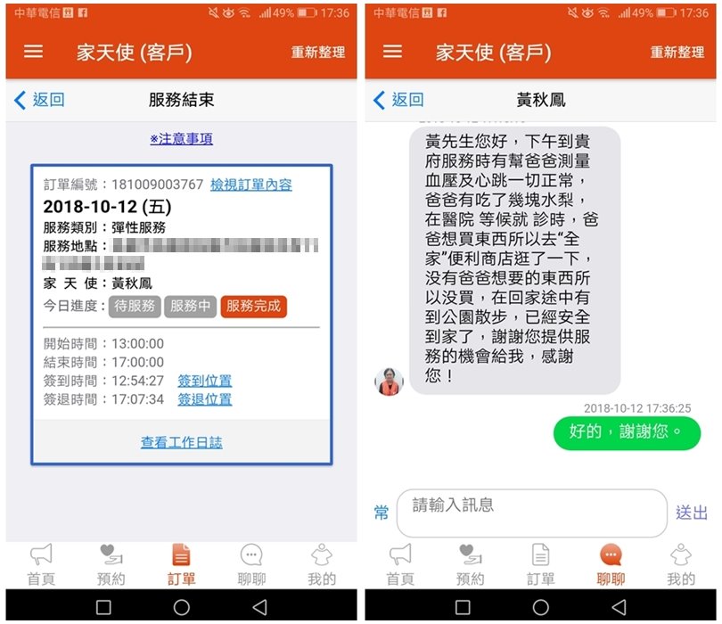 「家天使APP」對於臨時有照顧需求的朋友來說真的是非常方便,只要動動手指就能預約完成,沒多久就能配對成功,真的是非常方便!如果有固定需求的朋友也沒問題,像是每週有幾天需要固定出門工作的話,只要填寫好需求就能安心外出,就不用擔心家裡長輩沒人幫忙照顧會有什麼危險或意外了!而且雇主還可以直接跟看護溝通,有任何問題都能即時解決,也更能掌握當天實際的狀況,真的是相當貼心的設計,有需要的朋友不妨也可以下載體驗看看唷!