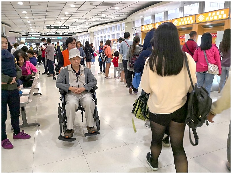 ▼回診時間到了!看護帶著老爸帶醫院去回診電療,途中也會幫忙辦一些像是掛號、報到、繳費等手續!