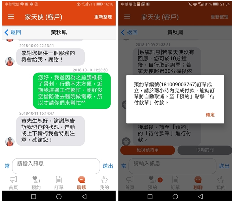 ▼最棒的一點是在服務前也可以跟看護直接溝通情況,像是大口老爸在腰椎長骨刺,有時候天氣一變化就會比較容易痠痛,有時候嚴重時甚至行動不太方便,大口因為常要跑來跑去或是工作比較多,沒辦法每次都陪老爸回診,這時候就可以請臨時看護來幫忙囉!預約完成後要在兩個小時內進行付款,不然訂單就會自動取消囉!
