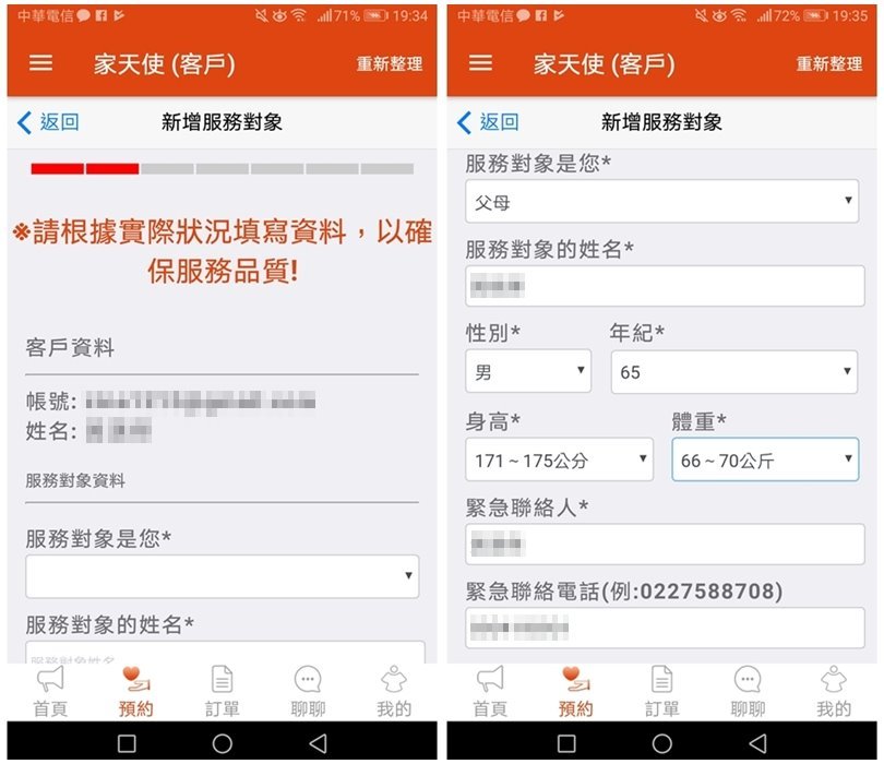 ▼接著就是填寫服務對象的資料,像大口是希望看護來協助老爸回診及日常照顧,所以就是填寫老爸的資料即可!