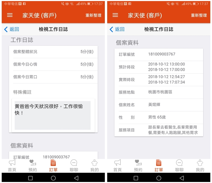 ▼完成後也可以在訂單總覽中查看詳細內容,之後可以查詢打卡或是工作紀錄!