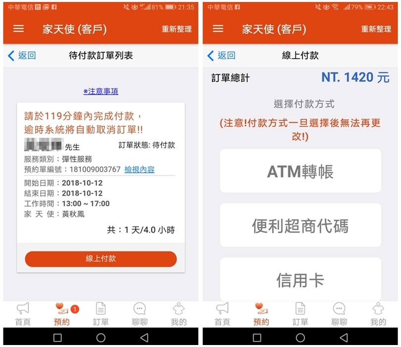 首次預約家天使APP於線上結帳時輸入折扣碼(ZINE1215 ),