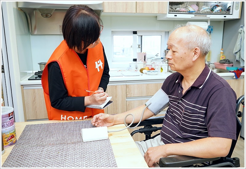 ▼到了預約當天,看護果然提早一點到達,讓我們留下了好印象!一開始會先詢問一下老爸的身體狀況,也會先幫忙量個血壓、體溫等,並紀錄下來!
