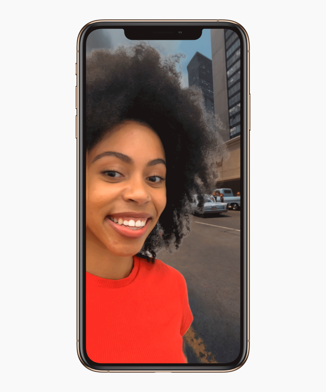 Clips 的「自拍情境」是利用 A12 仿生晶片上神經網路引擎的威力,在預覽與錄影期間呈現出背景與主角人像分割後來無縫融入各種景觀製作出逗趣、創意影片,全新的即時濾鏡也可以把影片剪輯片段轉變成黑白漫畫書、單色水彩畫或老電影風格來更表達出拍片者想要呈現的意境。