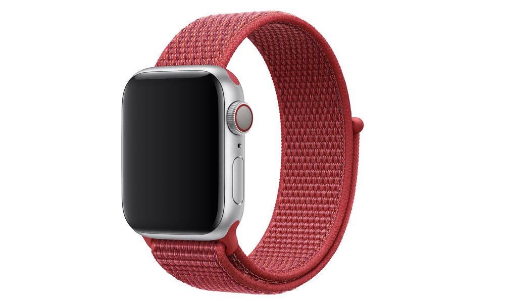 Apple 配件的公益款 PRODUCT RED 現在又為 Apple Watch 推出運動型錶環選擇。Apple Watch 運動型錶環柔軟、透氣又輕盈,搭配魔鬼氈扣帶,還能夠快速地輕鬆調整。錶環再以雙層尼龍織製而成,貼近皮膚的一面織圈緻密,形成舒適軟墊,同時方便排汗。錶帶反面上的安裝錶環可牢牢固定,更加堅固耐用。