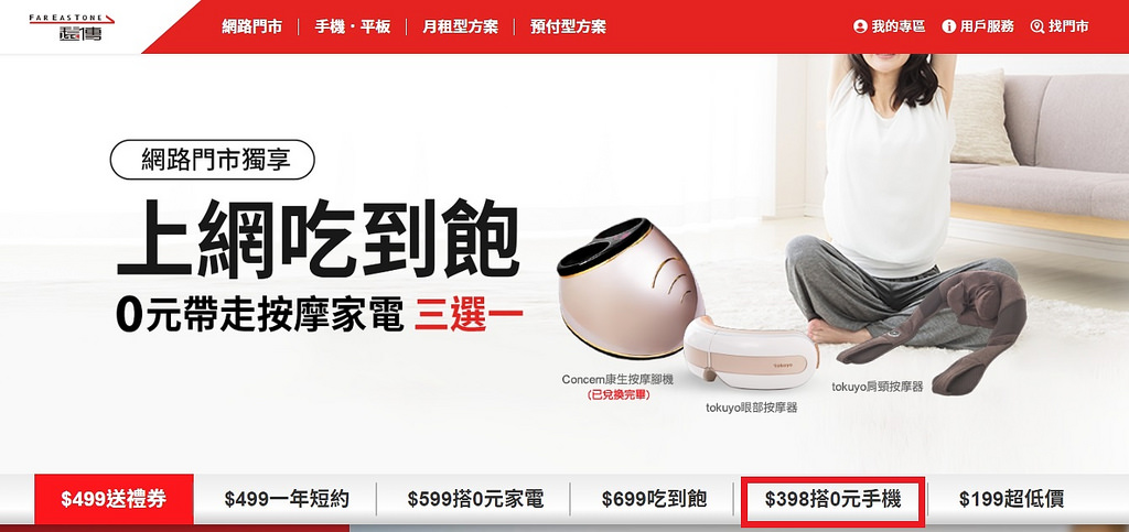 這個專案是只有網路門市獨家的資費,從遠傳官網進入後,選取產品資費,接著網路門市下方有個獨家資費,或是直接連結http://bit.ly/2P96vCs ,點下去就對囉,除了398搭0元手機外,還有其他同樣是網路門市專屬資費可參考。