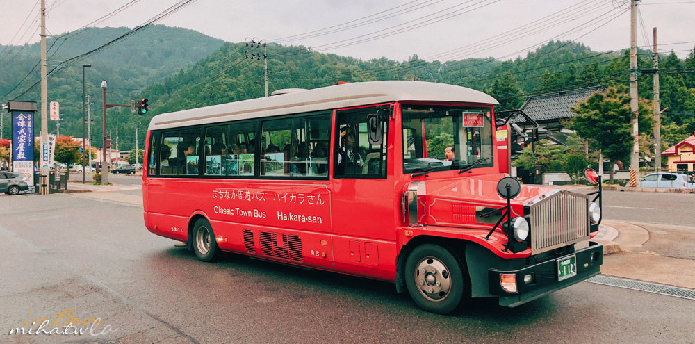 「あかべぇ」是紅色車順時針方向搭乘,首班車9:15、末班車16:15,每30分鐘一班。