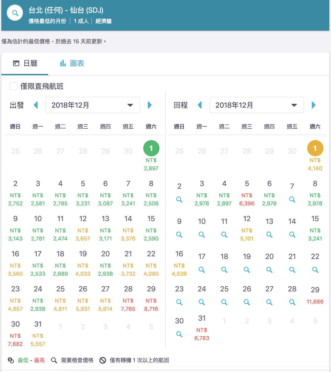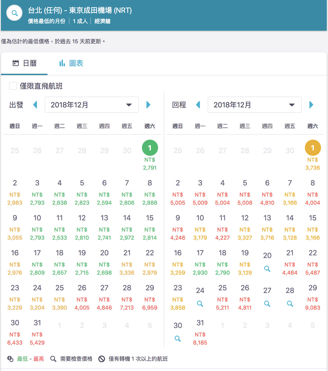 我會用skyscanner查整個月份票價,然後篩選最便宜時段出國。