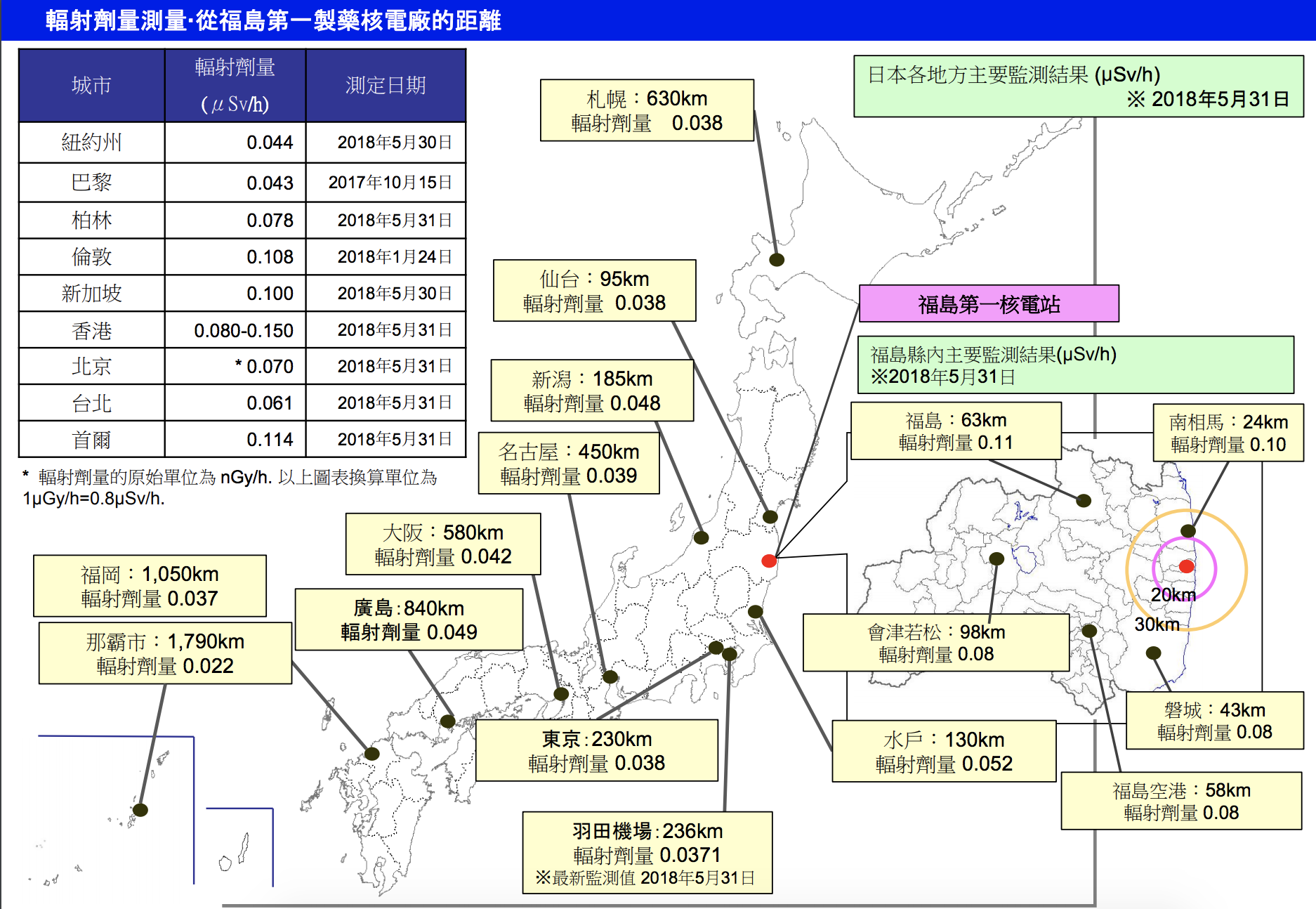 從今年5月31所測得的數據也可以發現,福島的輻射量已和全球各大城市的輻射量相去無幾,甚至和香港、新加坡、首爾、倫敦等數據是差不多,甚至比福島還要高一點點耶。