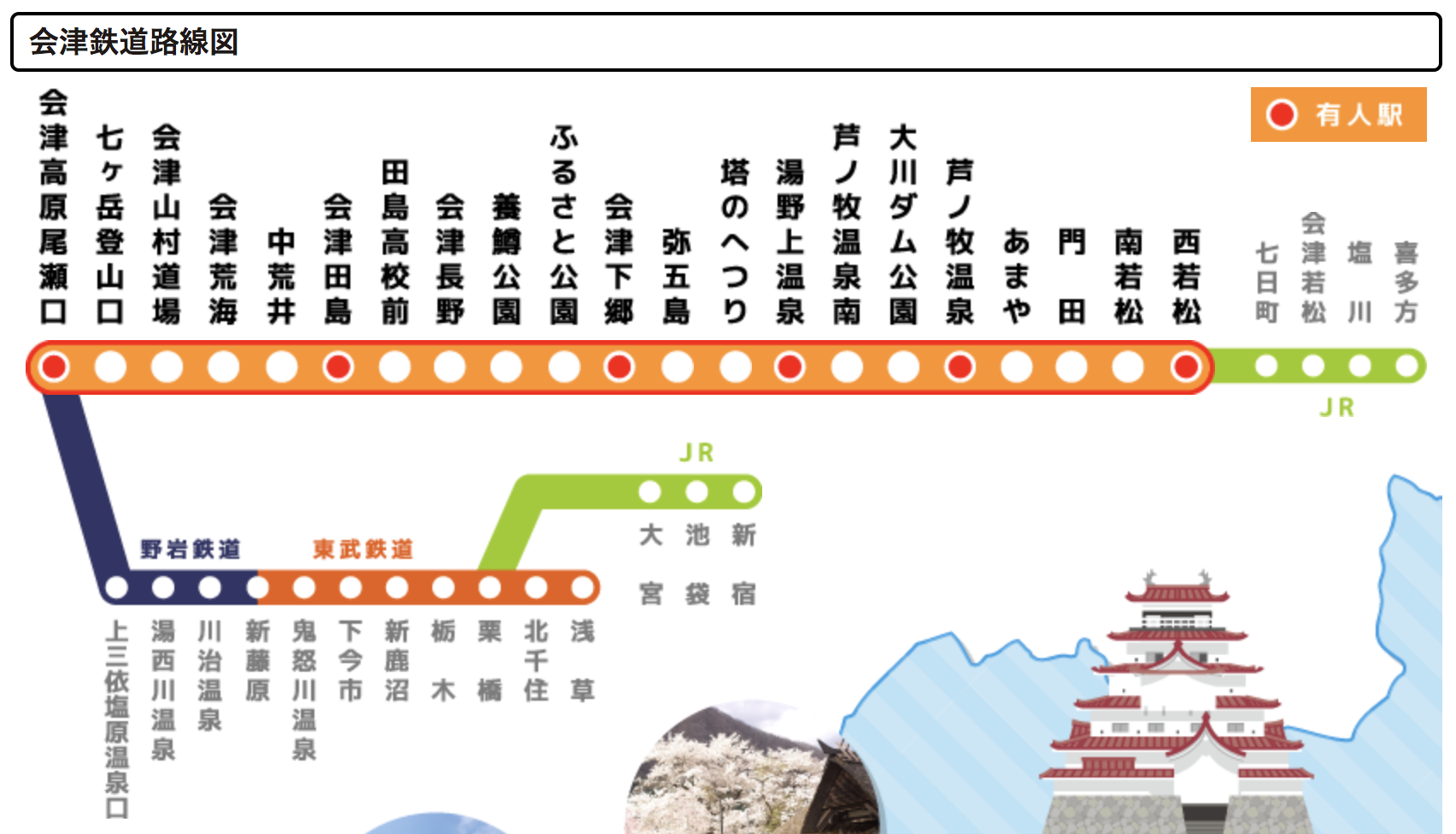 或者你也可以從淺草搭會津鐵道轉JR到會津若松。