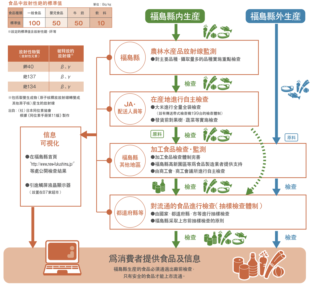 至於從日本進口的食物,經過日本方的層層把關到台灣邊境抽驗,根據行政院原子能委員會監測市售日本食品之輻射標準,結果均顯示台灣市面流通食品安全無虞。(真的不安心,就來衛福部食藥署找答案吧)