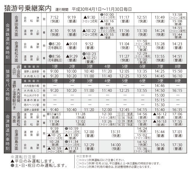 (3)西若松駅來往湯野上溫泉駅+猿游號(湯野上溫泉駅來往大內宿)