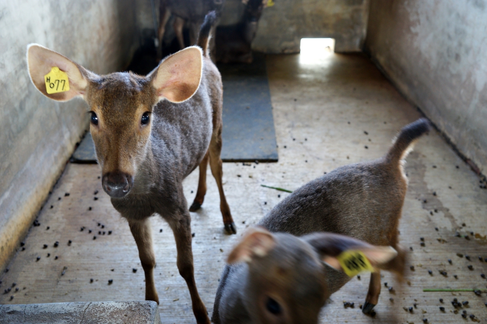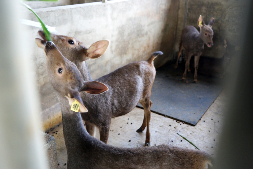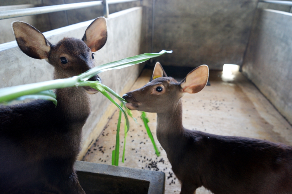 裡面的空間很大,兩三頭水鹿或是更多會放在同一個空間,隨心所欲想要餵誰就餵誰。