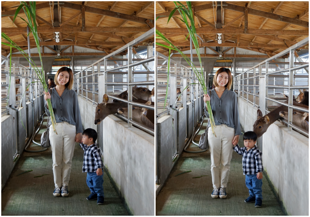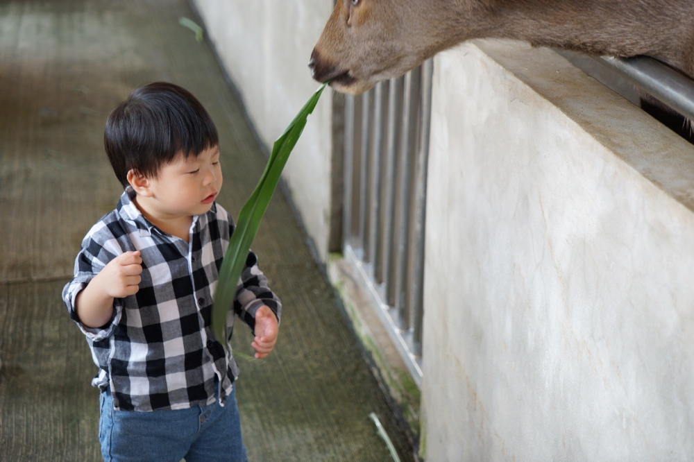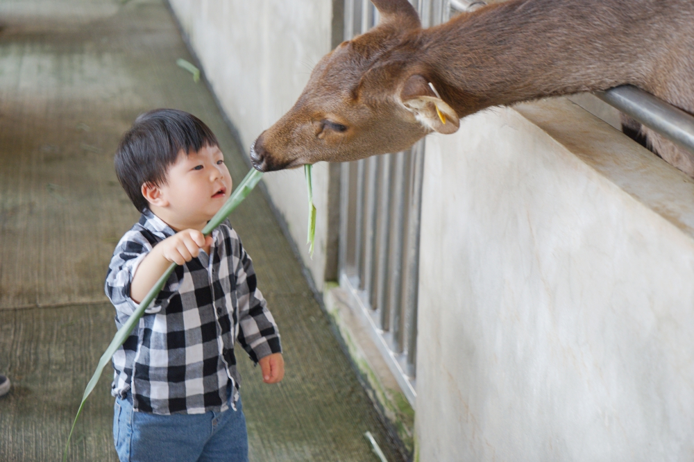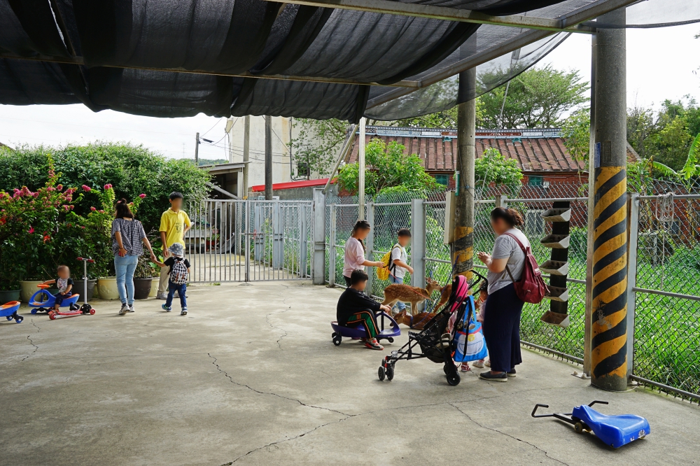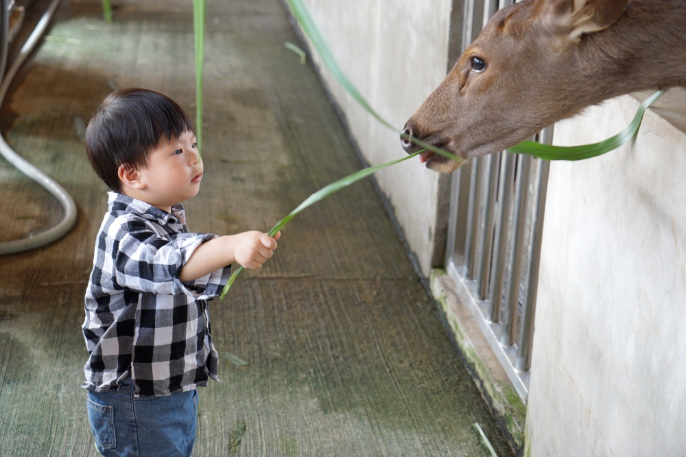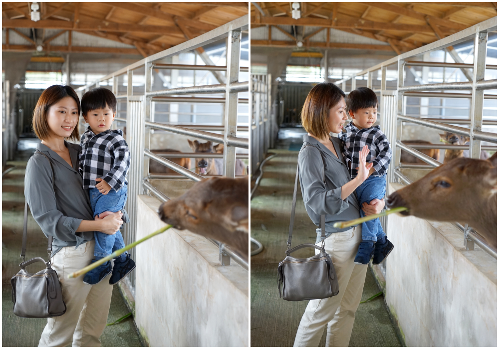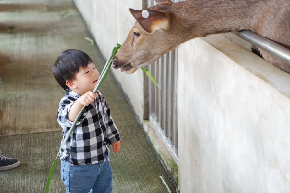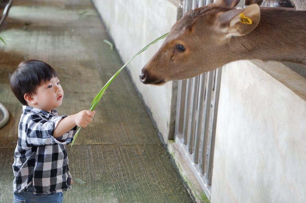 整體來說可以帶小孩餵鹿、玩一下,其實還不錯,但因為園區很小,很像自宅後院,有一大區水鹿的家,空出一塊地來活動這樣。比較大的小朋友去會更好玩,阿福現在一歲八個月,餵鹿吃草、玩玩車子其實就差不多了(笑)