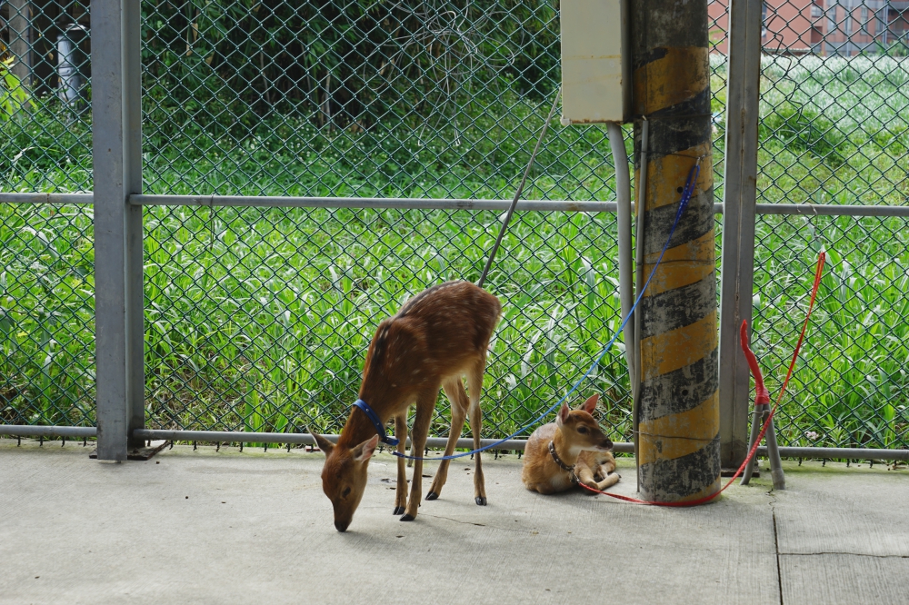 外面會綁幾頭小鹿,給大家餵奶、拍照、摸摸,感覺都照顧得不錯,毛色和神情都挺好的。