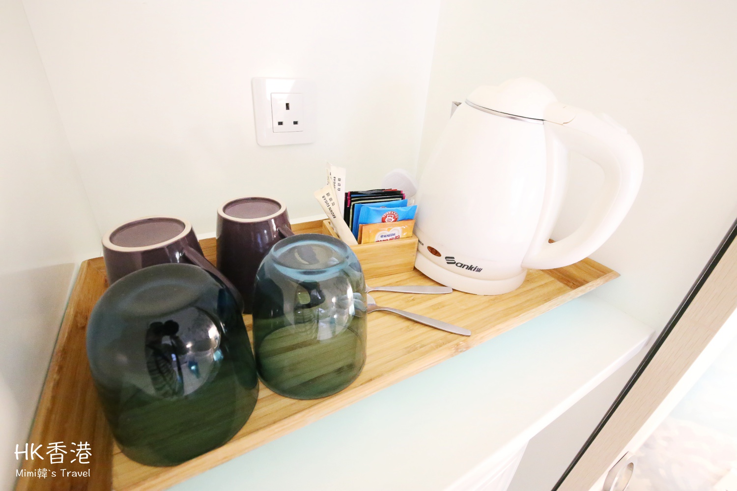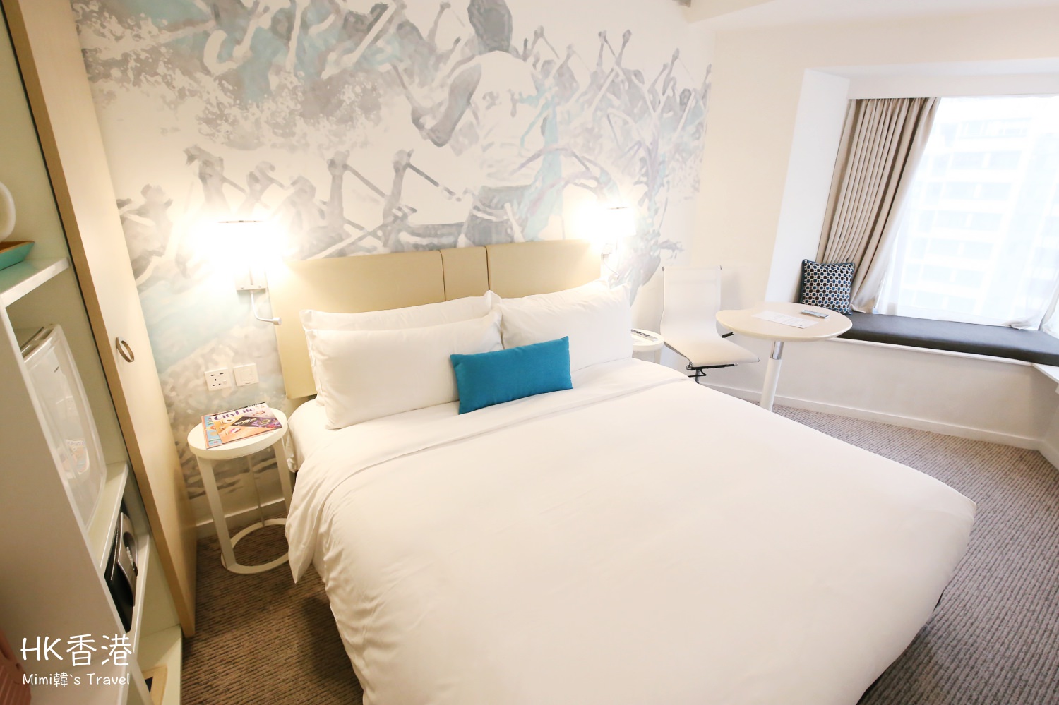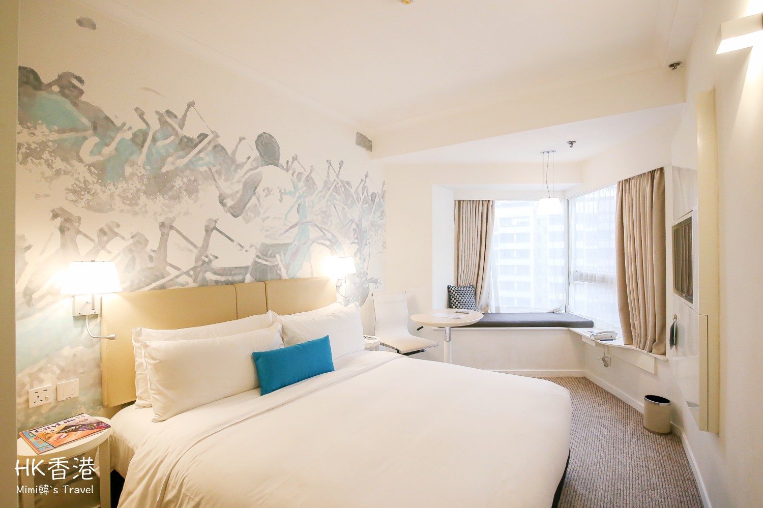 空間中等,用色清爽,再加上室內採光非常好,完全沒有侷促的感覺,以香港住宿來說這樣的環境還滿好的。
