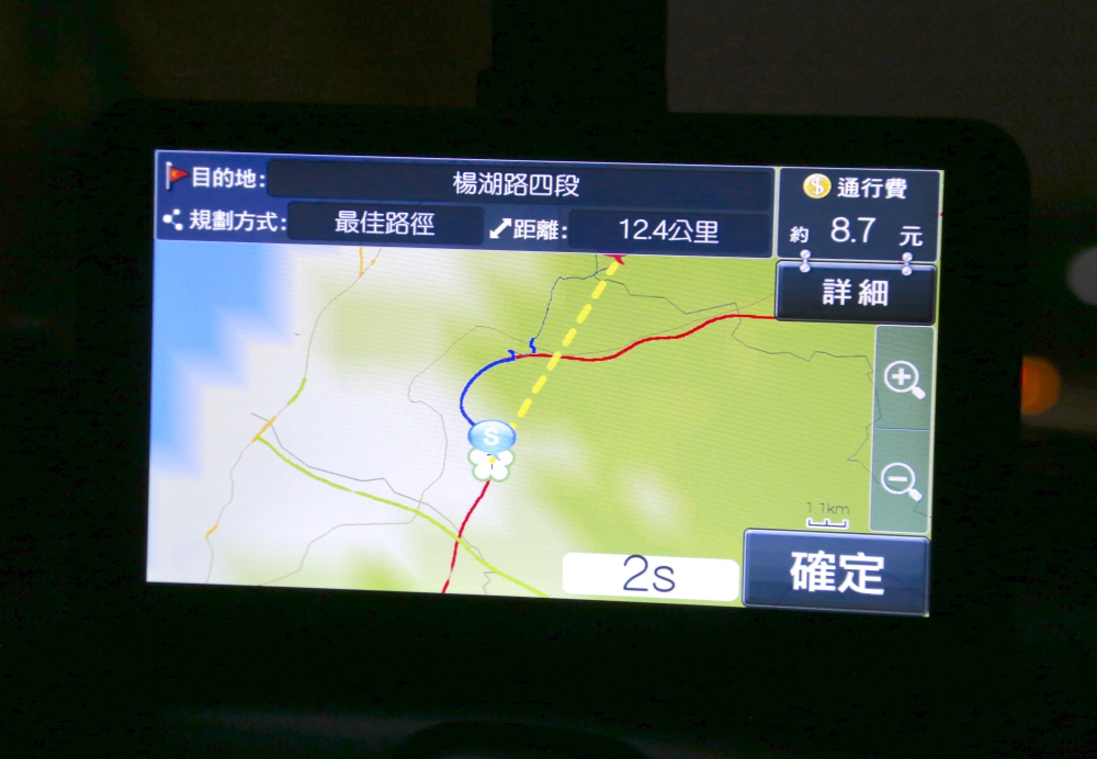 機器立即顯示指定目的地,按下確定後開始導航。在車輛行進時,駕駛或是副駕座的人要操作導航機都有點小小不方便又危險,光是車輛行駛中,手要一直按機器,常常會誤觸,用手機設定目的地後傳送到導航機的優點是,副駕駛座人員能在手機上網時,看到想去的地方,直接協助駕駛設定目的地,並發送到機器,一次完成。