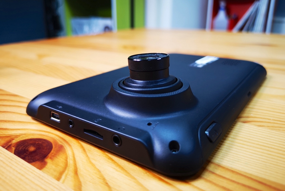 面向機器螢幕左側是耳機插孔、行車記錄器記憶卡插槽、AV-in、mini USB 插孔。