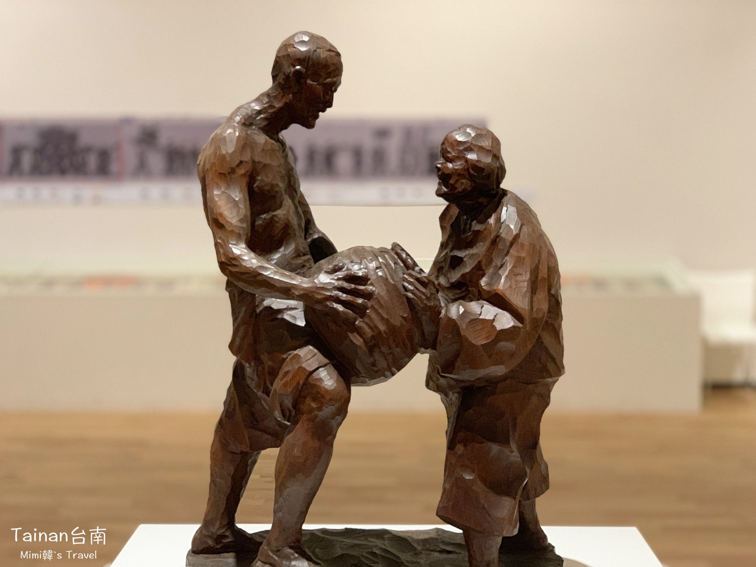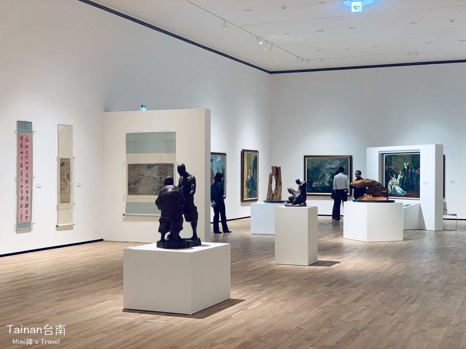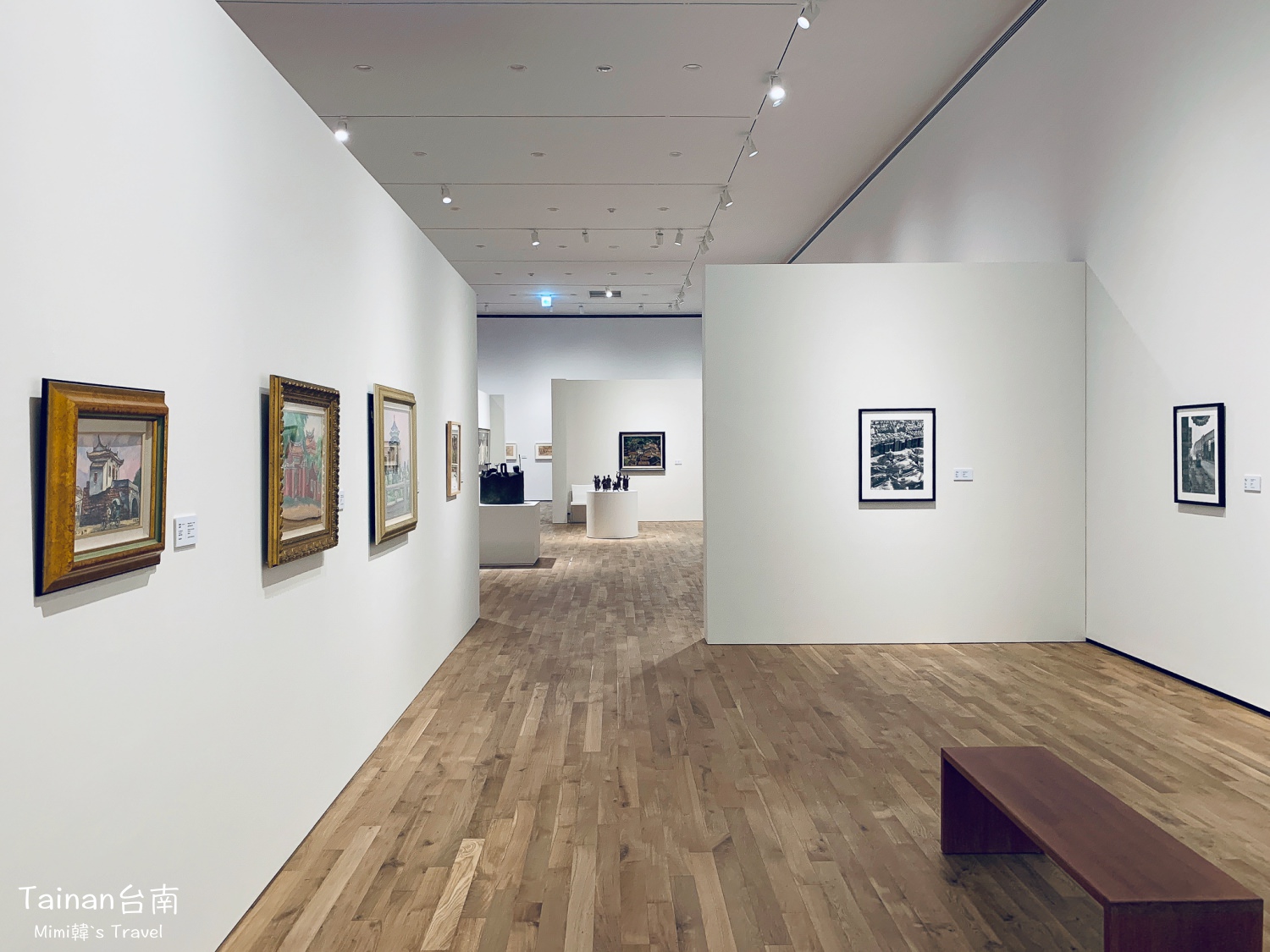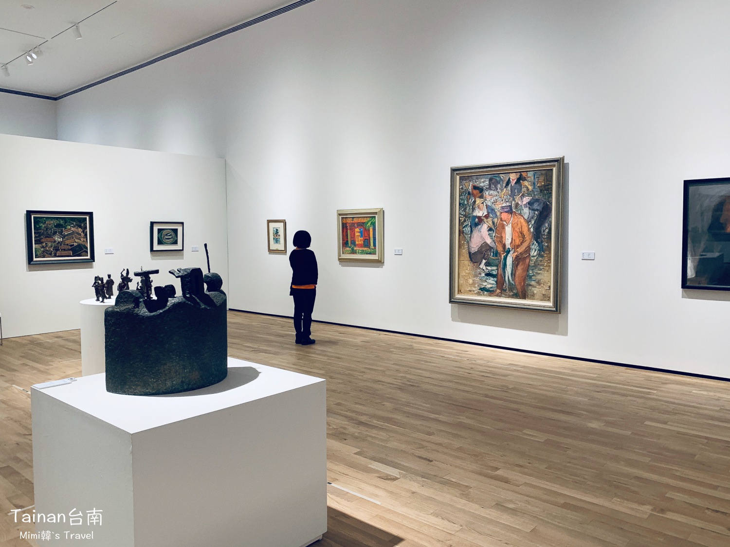 目前整個美術館規劃成幾個展區,分別展出了「相挺」系列的作品,展出由台南藝術家們所捐贈油畫、水彩、素描、膠彩、版畫、攝影作品等館藏,其中還有由日本小林平一家屬捐贈大批顏水龍作品,蠻有看頭。還有另一區則是以水墨畫、雕刻為主的空間。