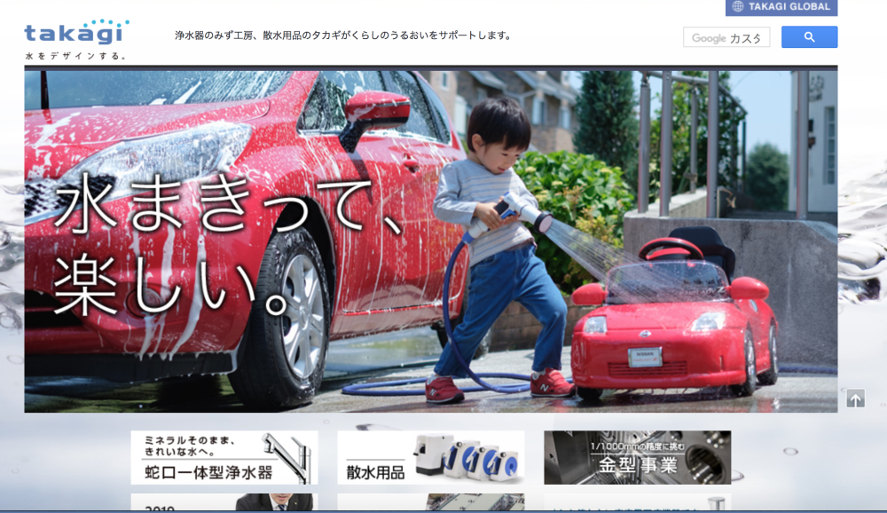 位於福岡的Takagi高城,其實在1980年起就深耕於日本的頂級園藝灑水用具,當年他們推出的五段變化的噴頭讓他們成為頂尖產品的代表,接下來陸續進入淨水器產業,也推出結合水龍頭與淨水器的劃時代產品